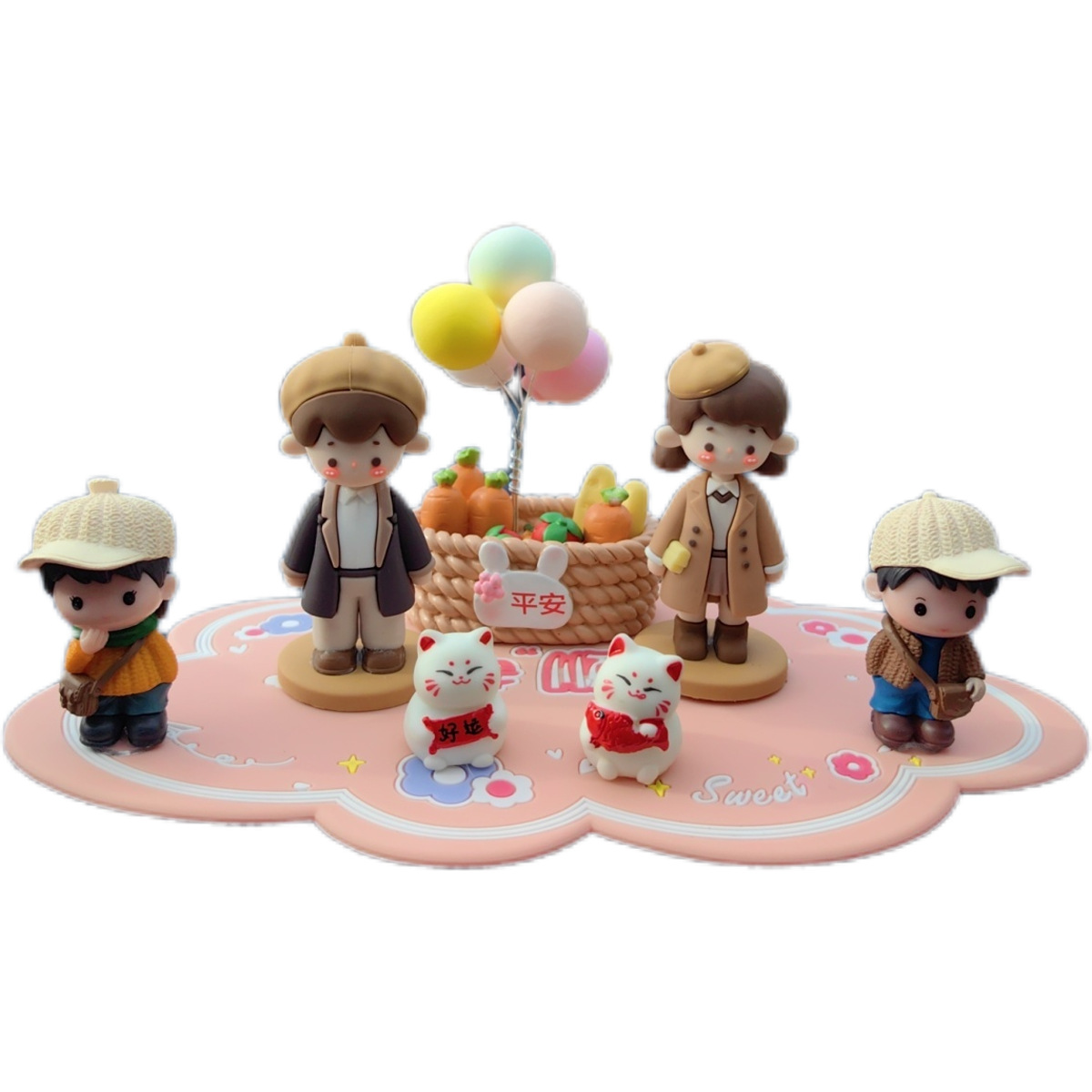 - 【幸福六口】咖爸妈+2男2女+花篮+招财猫
