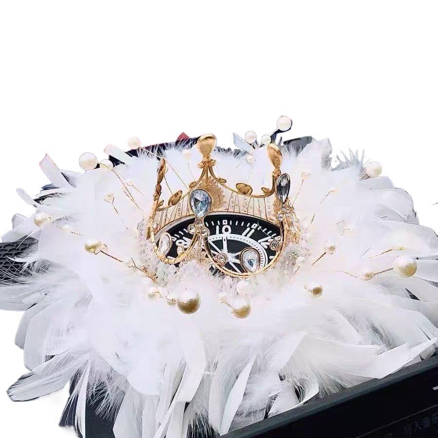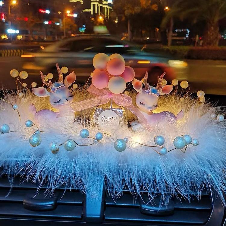 汽车载摆件女神皇冠车内轻奢款中控台小仙女饰品长款羽毛装饰用品