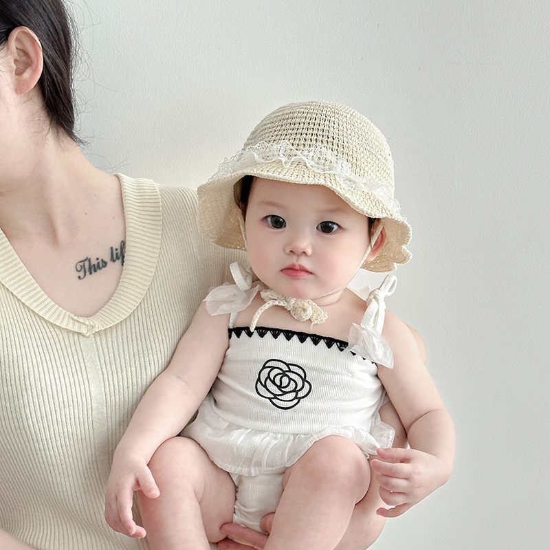 婴儿帽子夏季薄款透气编织草帽女宝宝小月龄出游沙滩洋气渔夫帽潮