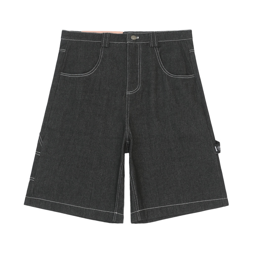 辑明线原色牛仔大短裤男款夏季欧美街潮过膝6分裤宽松休闲中裤子