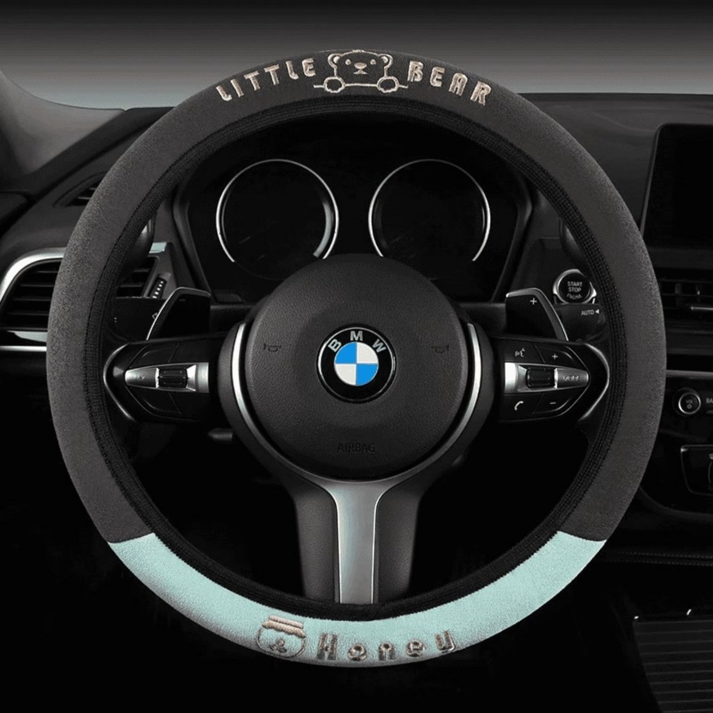 汽车方向盘套可爱刺绣夏季吸汗透气麂皮绒弹力把套不打滑四季通用