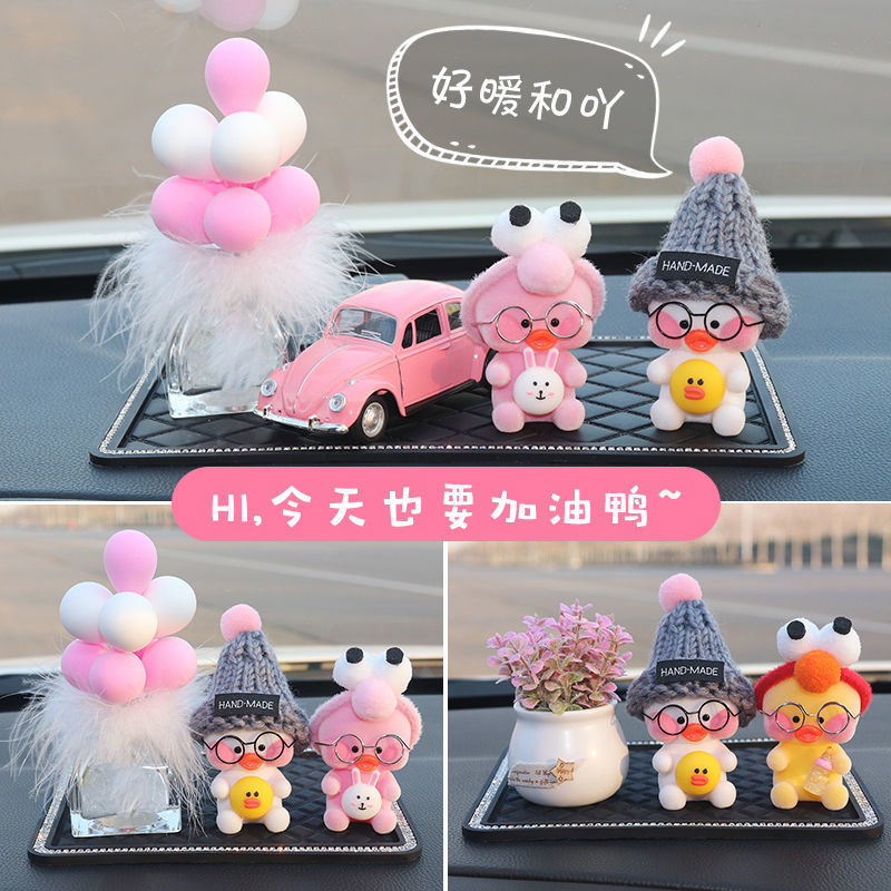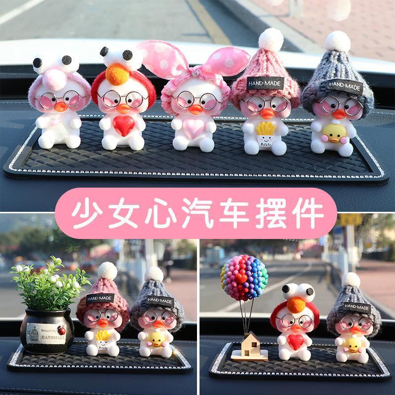 汽车摆件女生可爱鸭车载装饰用品卡通玻尿酸鸭植绒公仔摆件女