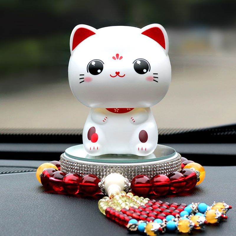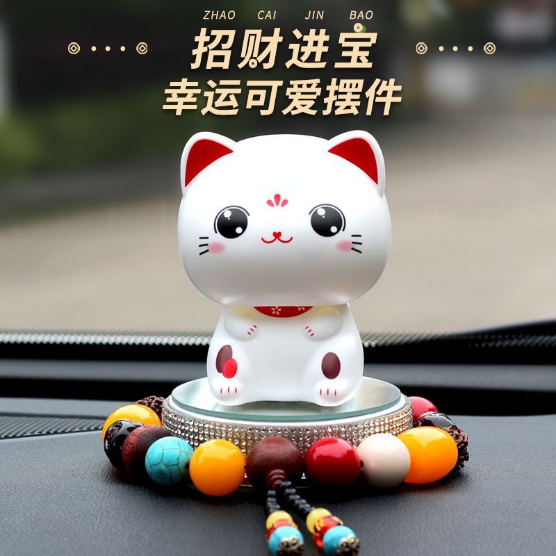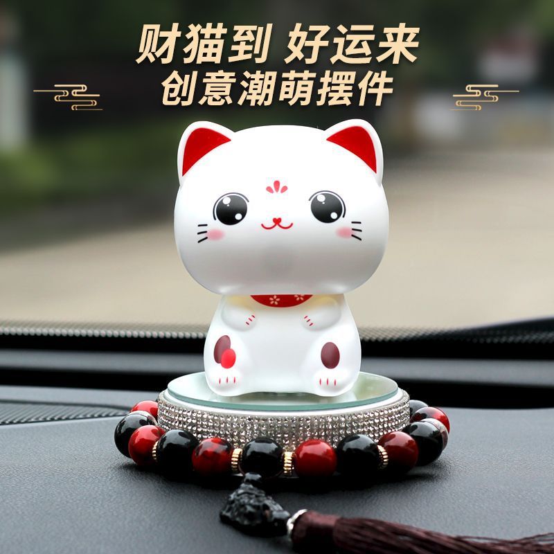 太阳能招财猫车载摆件车内中控台网红摇头创意可爱卡通