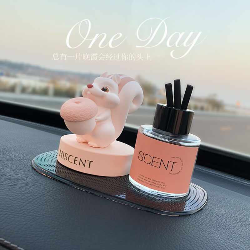 可爱大尾巴坚果小松鼠车载香薰新车摆件汽车车用香水车内装饰香氛