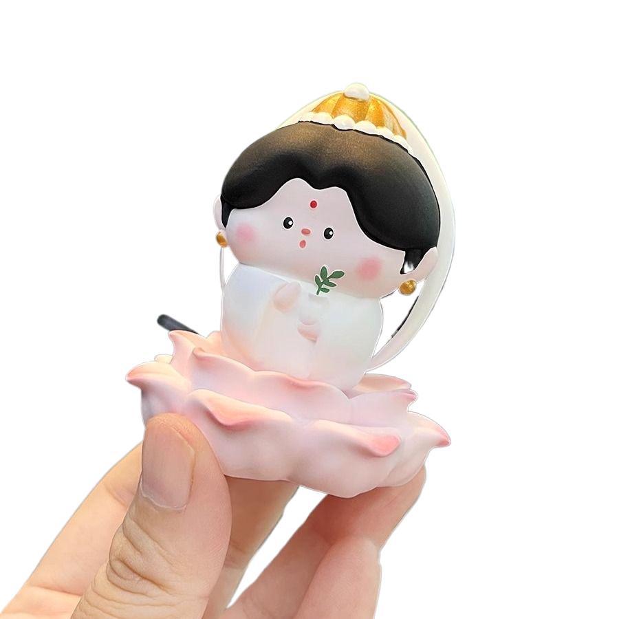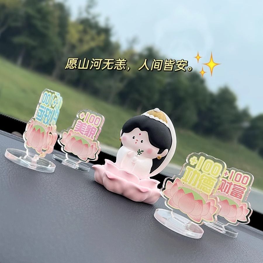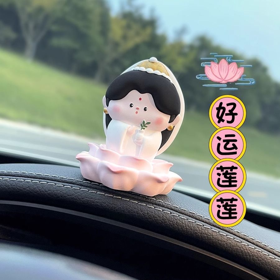 佛系小观音车内饰品摆件好运莲莲汽车中控台车载香薰装饰