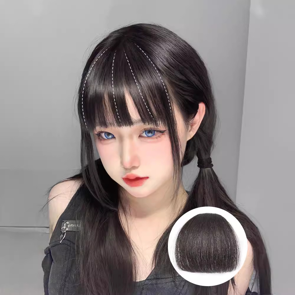 漫画刘海假发女头顶真发全真人发空气假刘海自然前额齐刘海假发片
