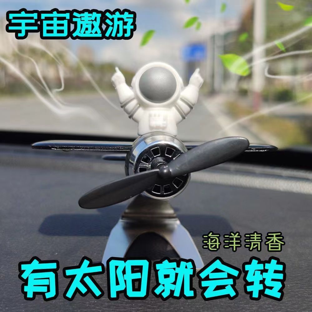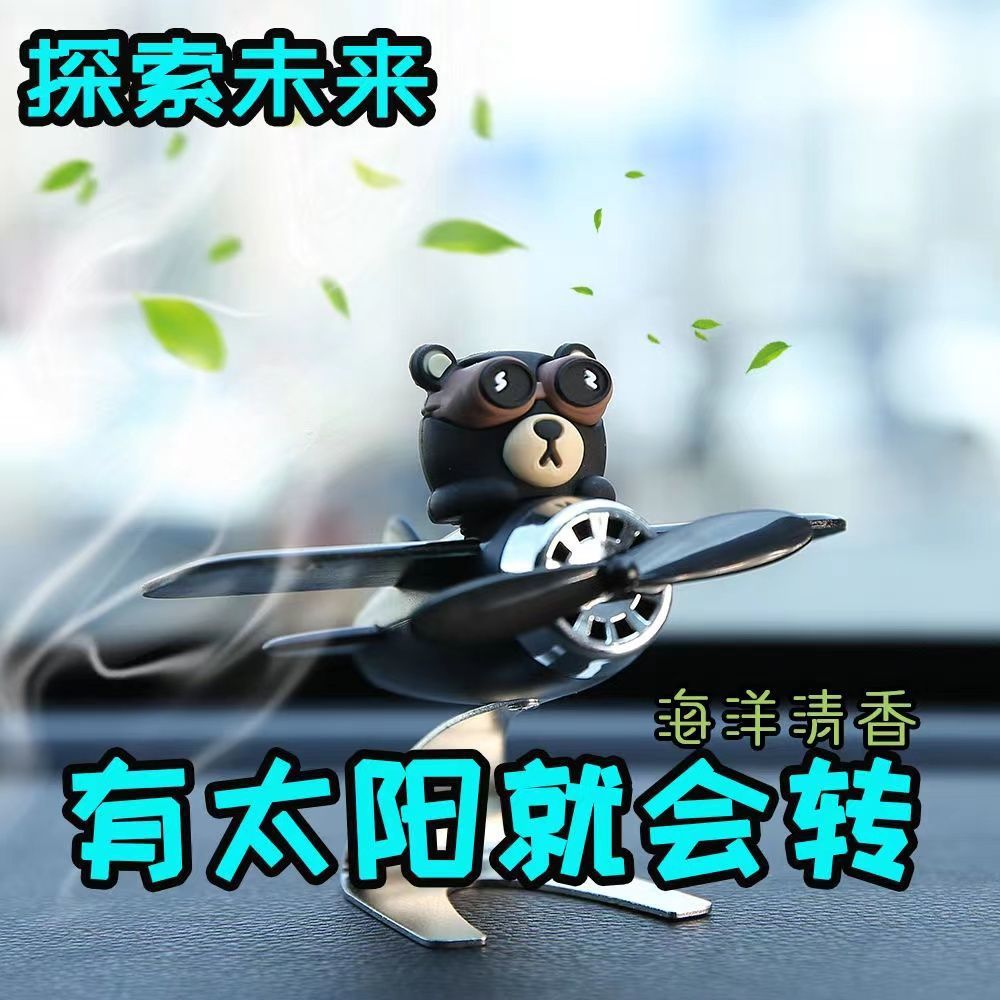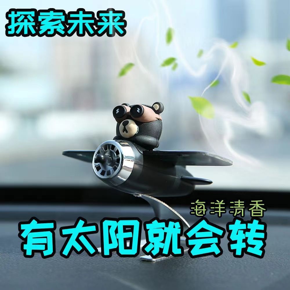车载香薰香水太阳能旋转飞机创意摆件汽车内饰装饰品除异味