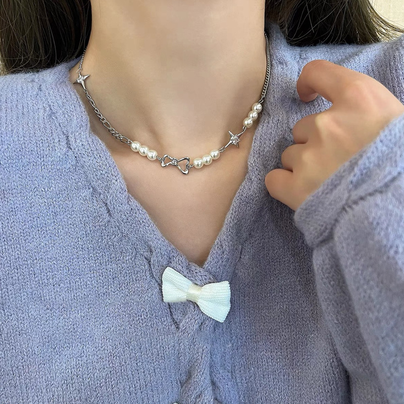 冷淡风拼接四芒星珍珠项链女ins嘻哈辣妹颈链choker锁骨链配饰潮