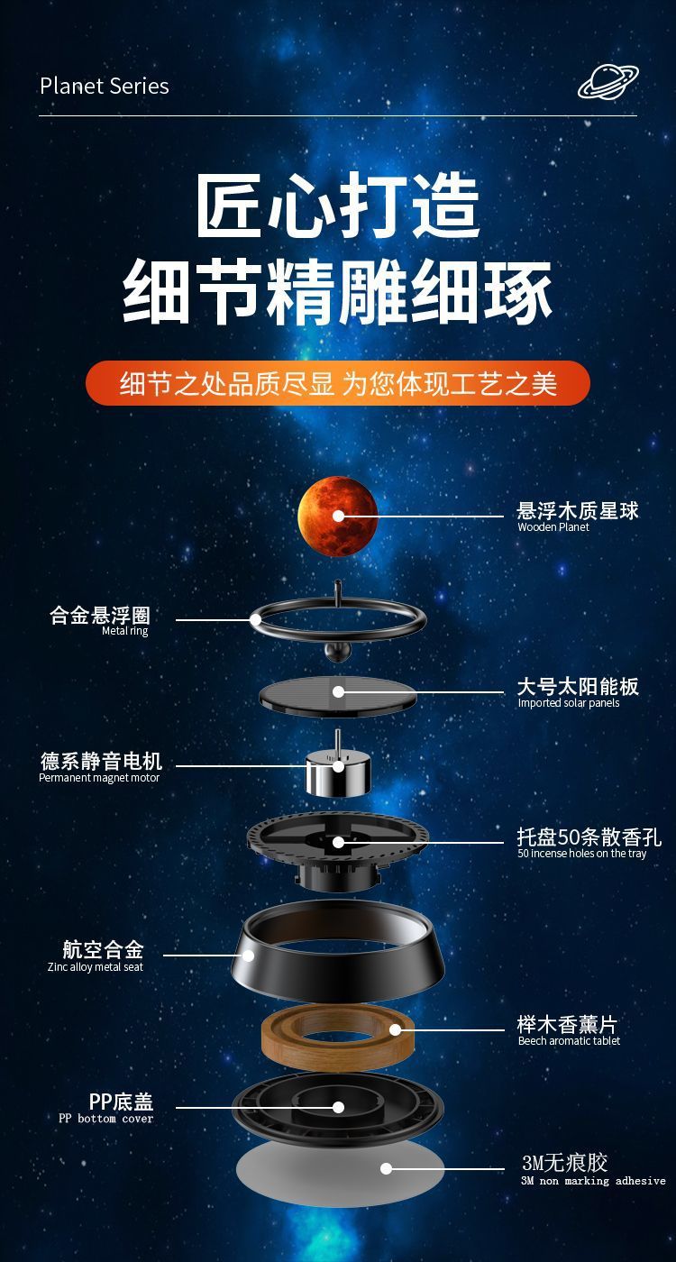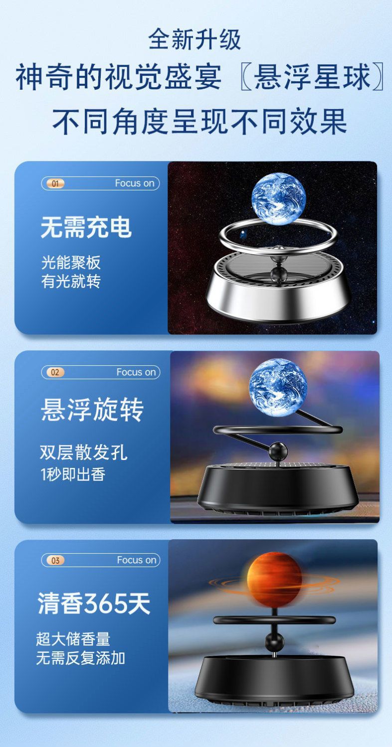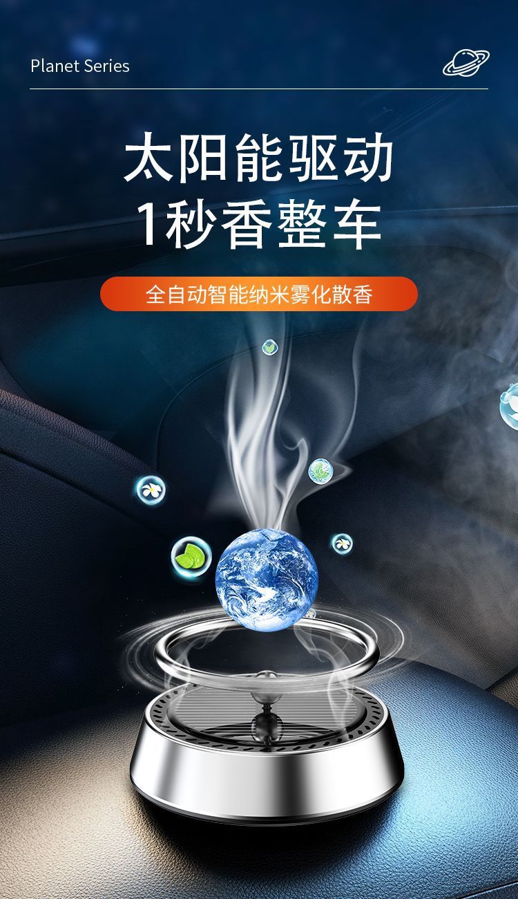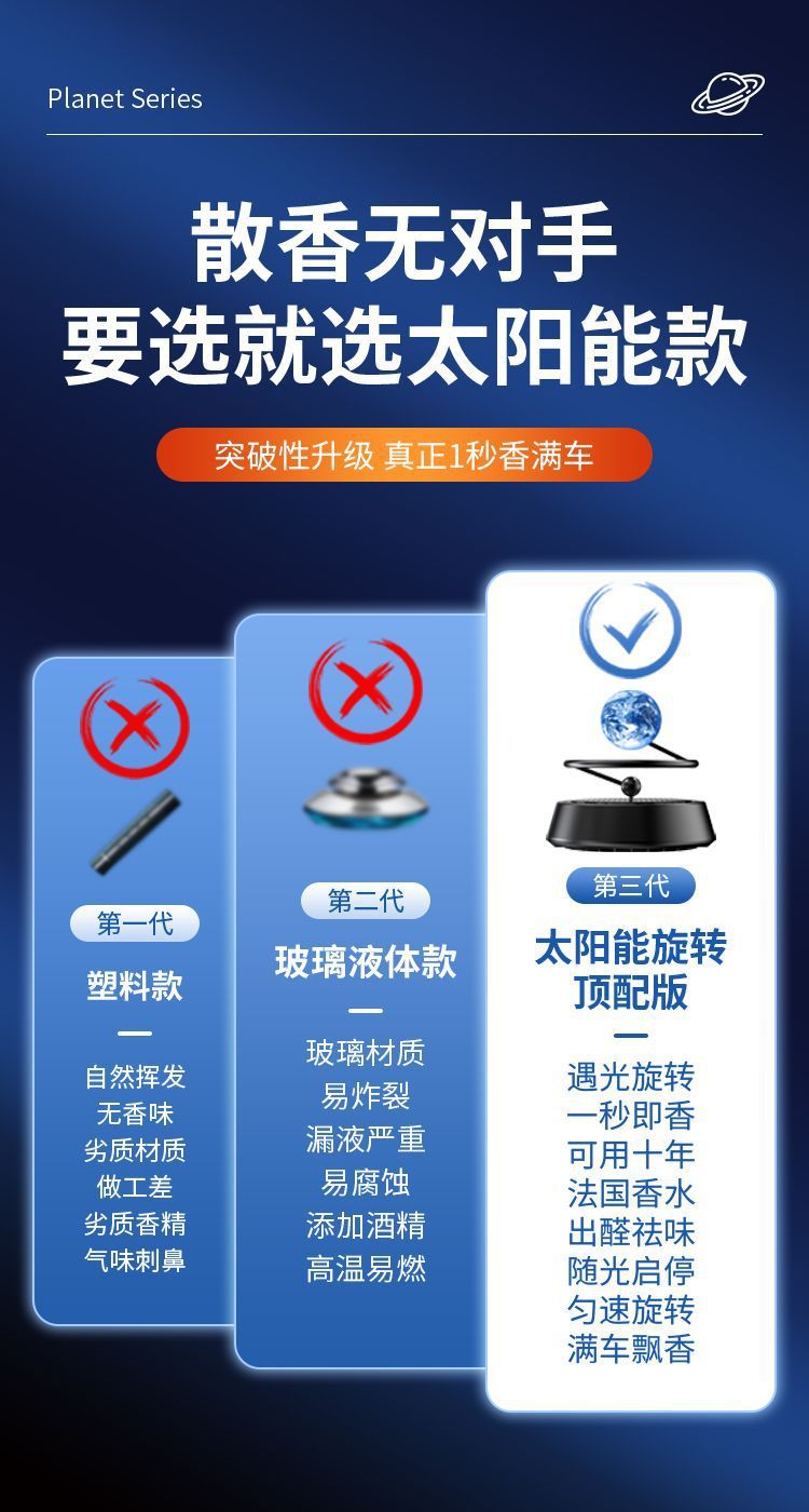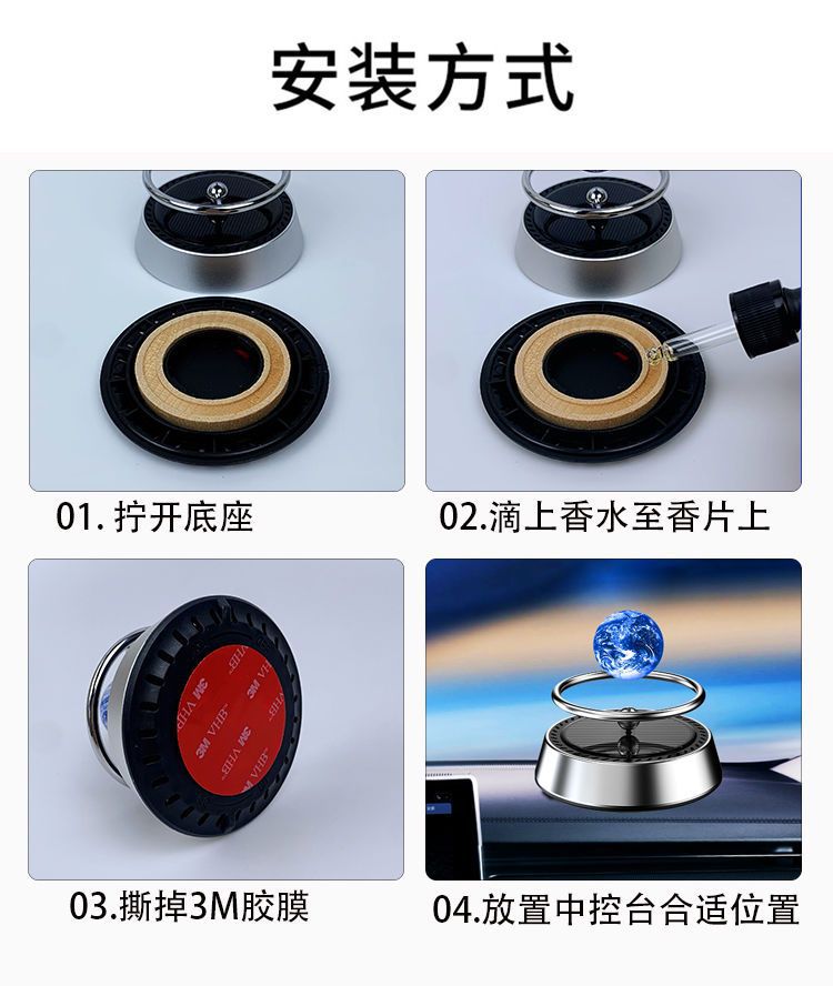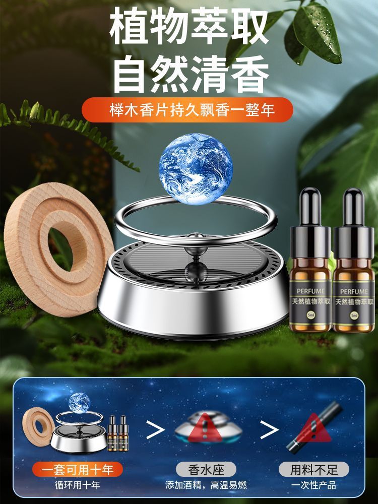 车载香薰汽车香水太阳能旋转轻奢车内装饰用品持久香氛感摆件