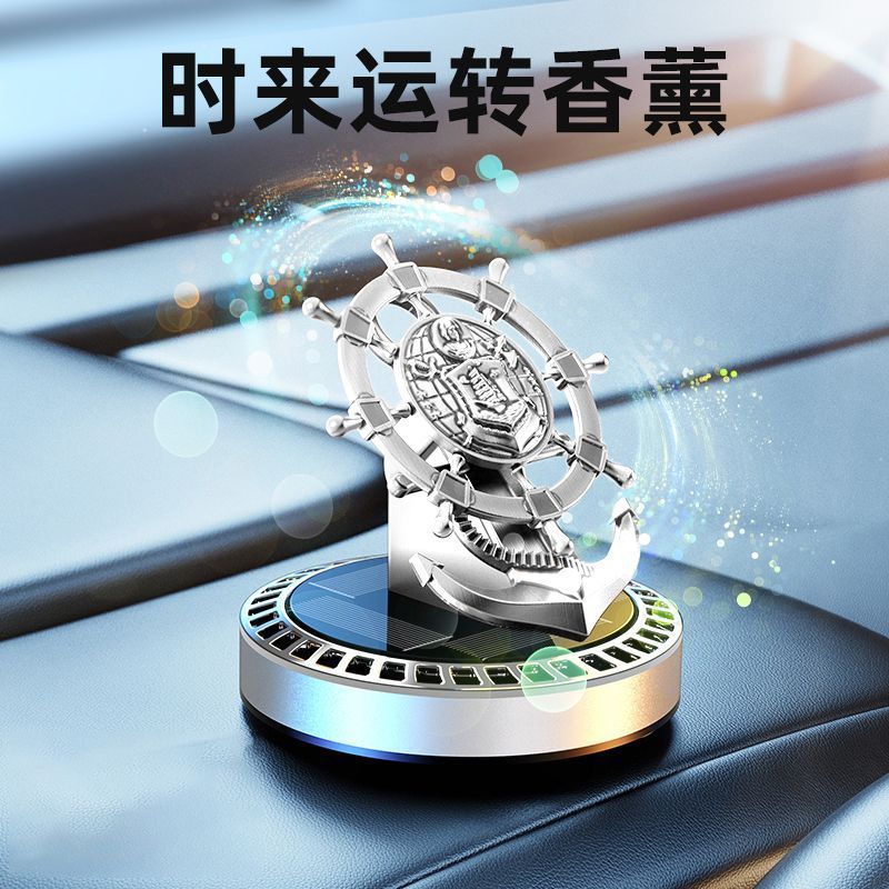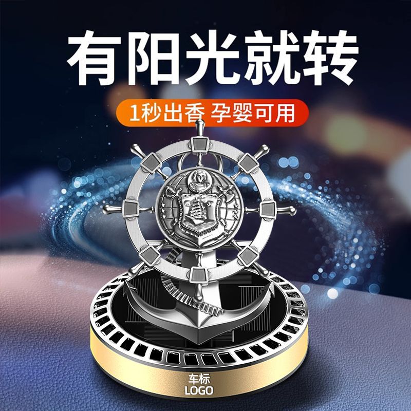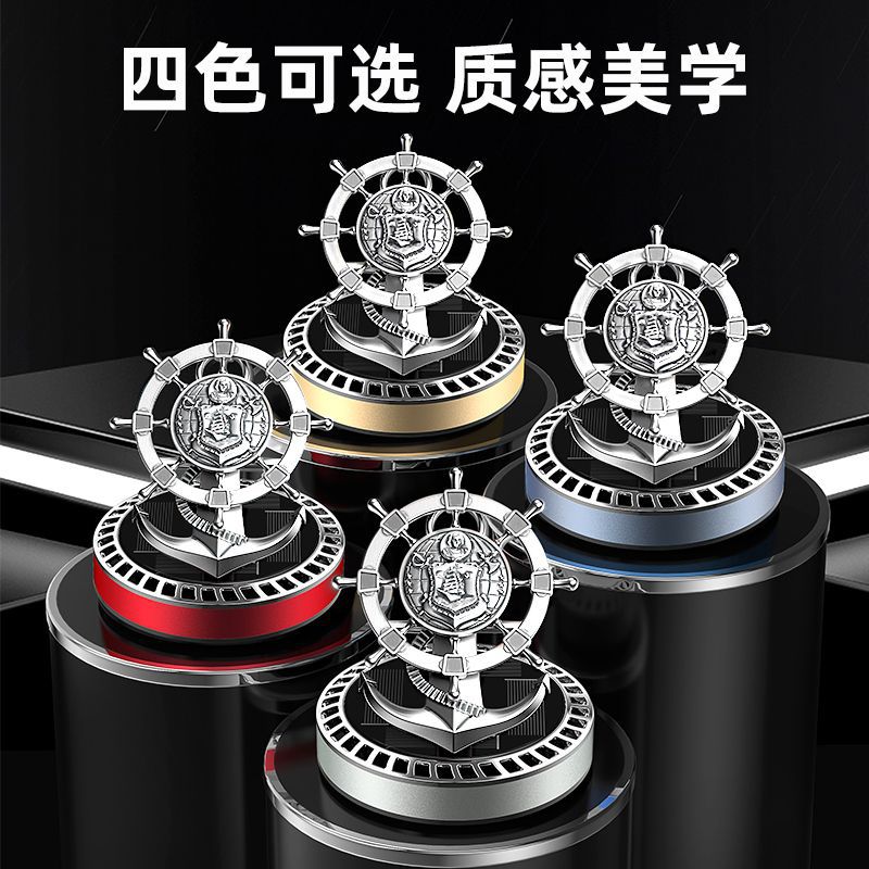 太阳能车载摆件太阳能香水座船舵香薰太阳能旋转摆件