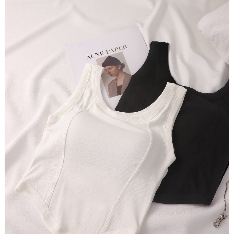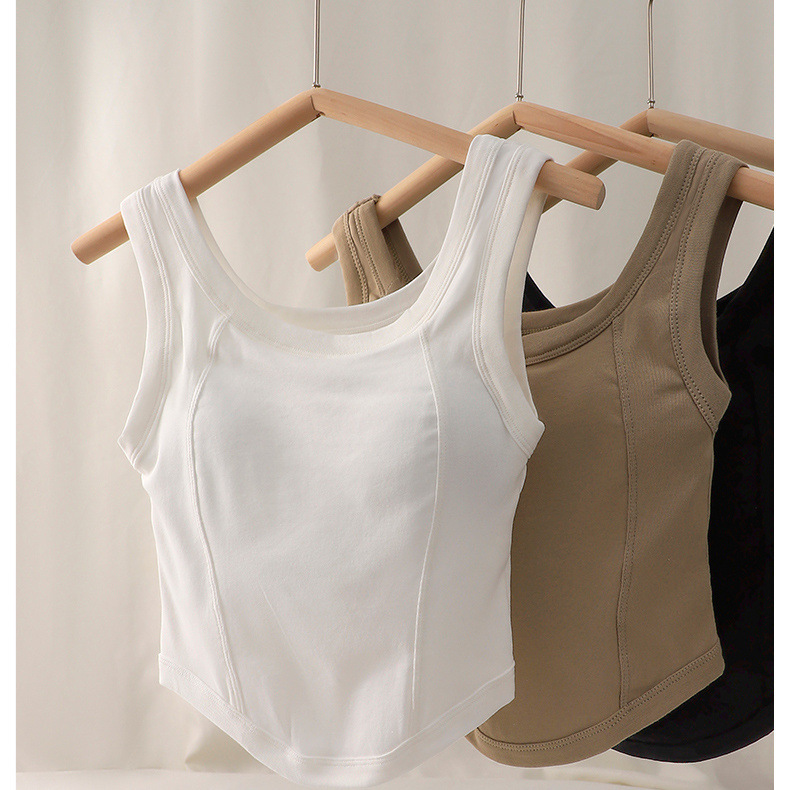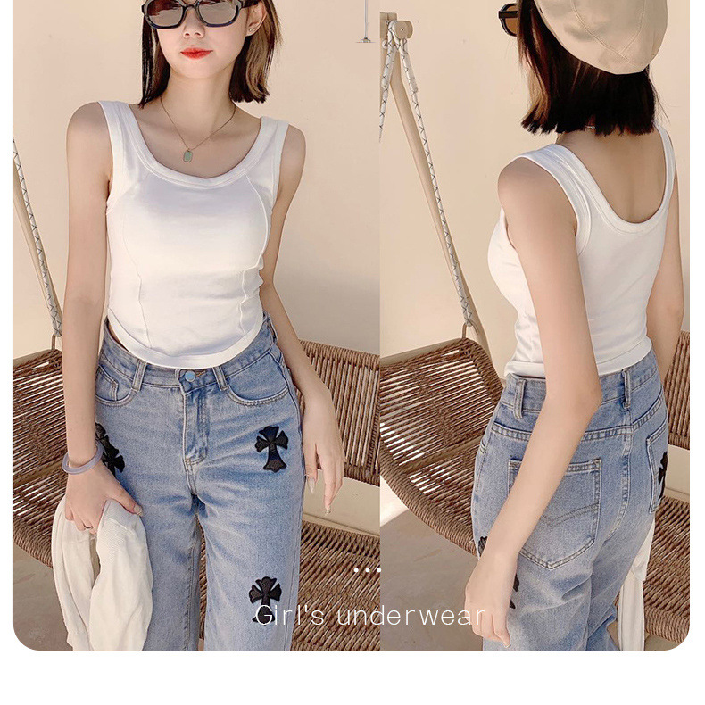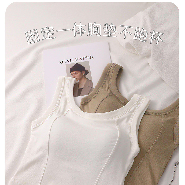 小吊带带胸垫内搭性感纯欲风白色短款修身美背背心女无袖打底上衣