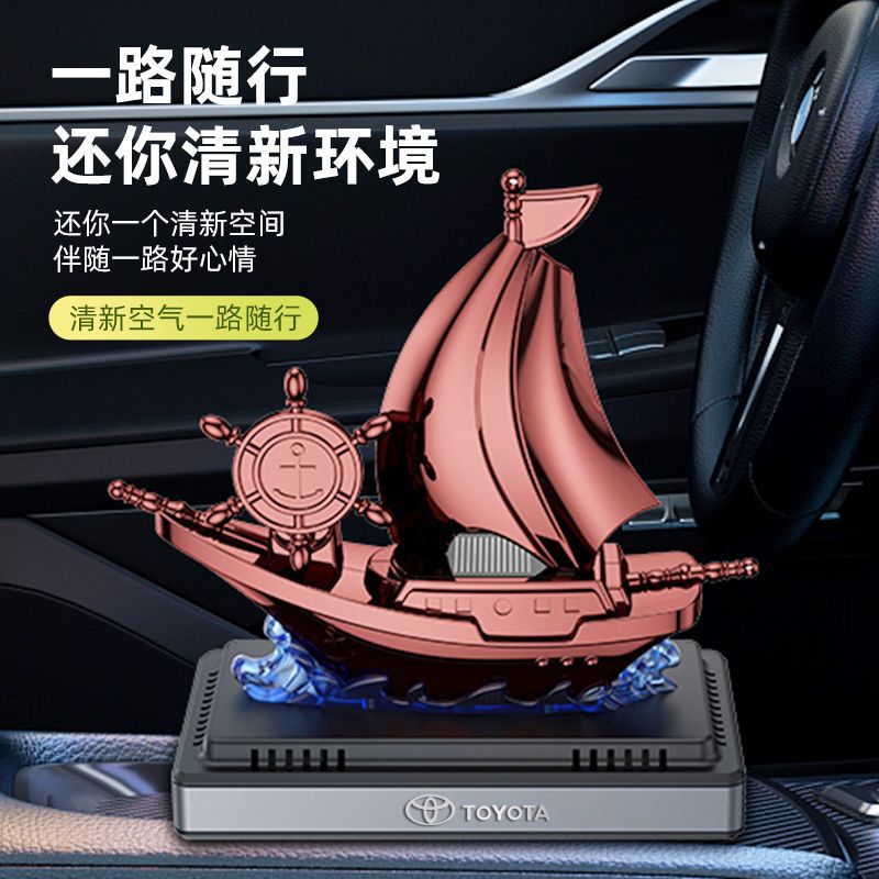 车载太阳能汽车香水香薰摆件旋转得胜号船舵车用香氛持久车内