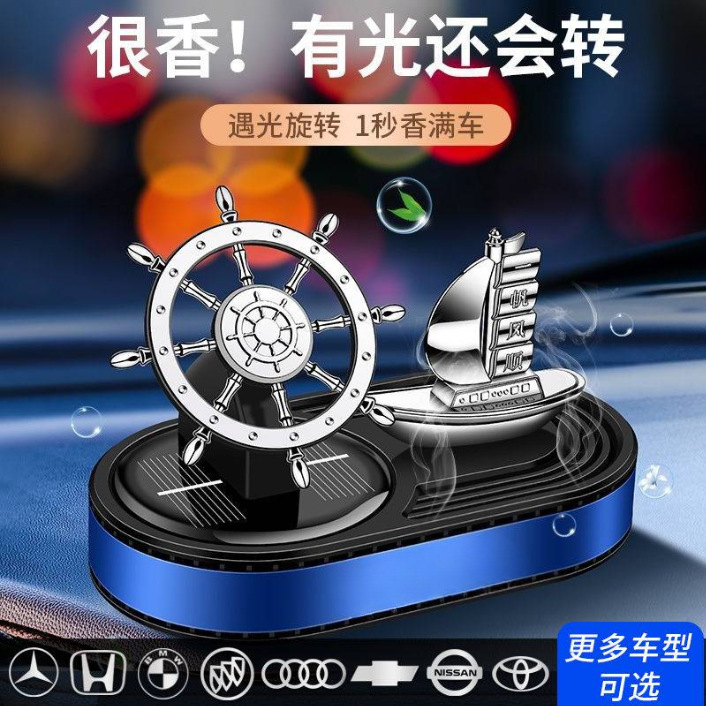 车载香薰一帆风顺汽车摆件太阳能香水新款舵手旋转装饰品