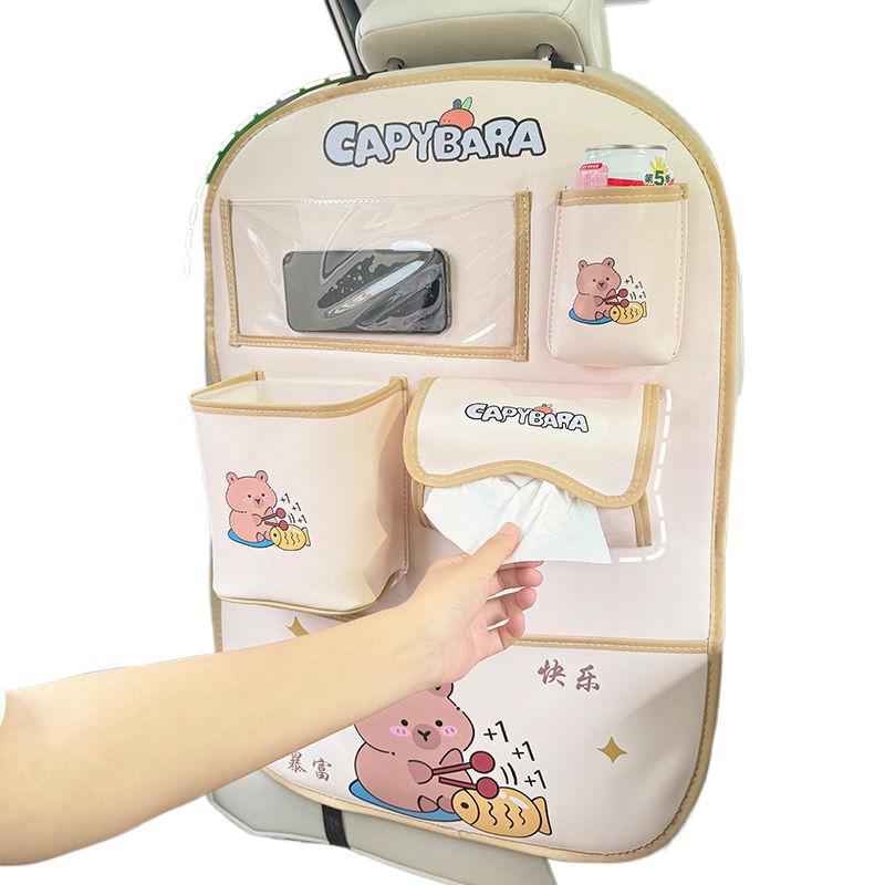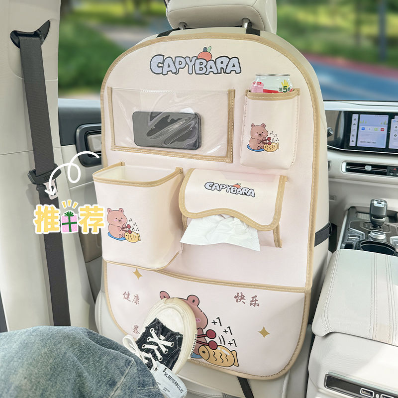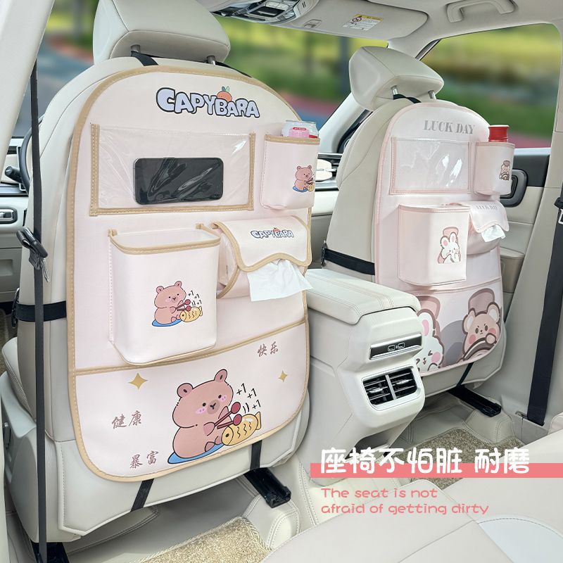 车载可爱儿童防踢垫车内防脏垫汽车收纳袋保护垫座椅储物
