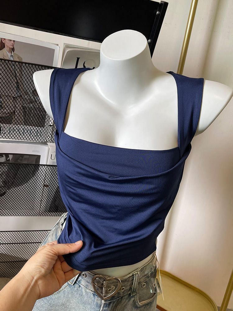 【全网低价】短款上衣夏纯色修身一字领白领上班族时尚百搭吊带