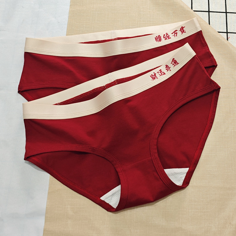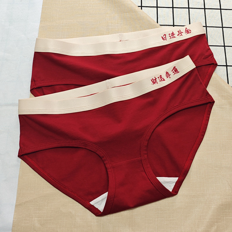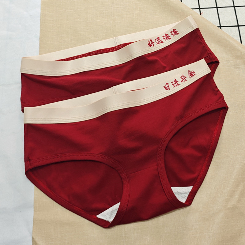 女士内裤本命年红色三角裤少女生学生蛇年潮流个性喜庆结婚短裤头