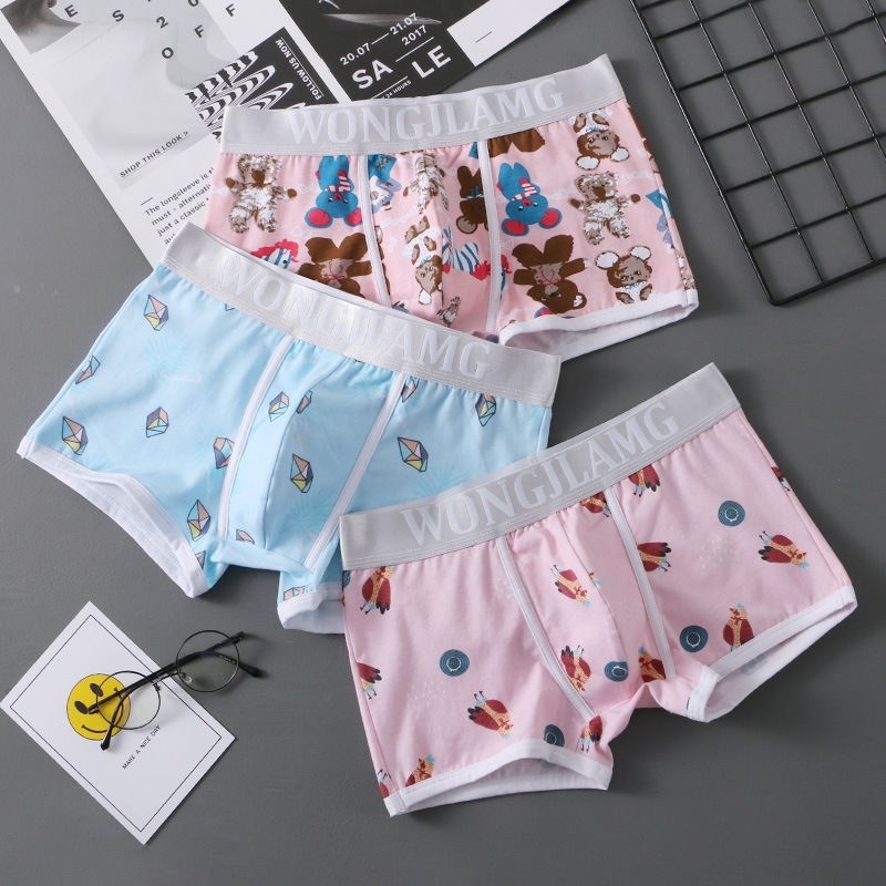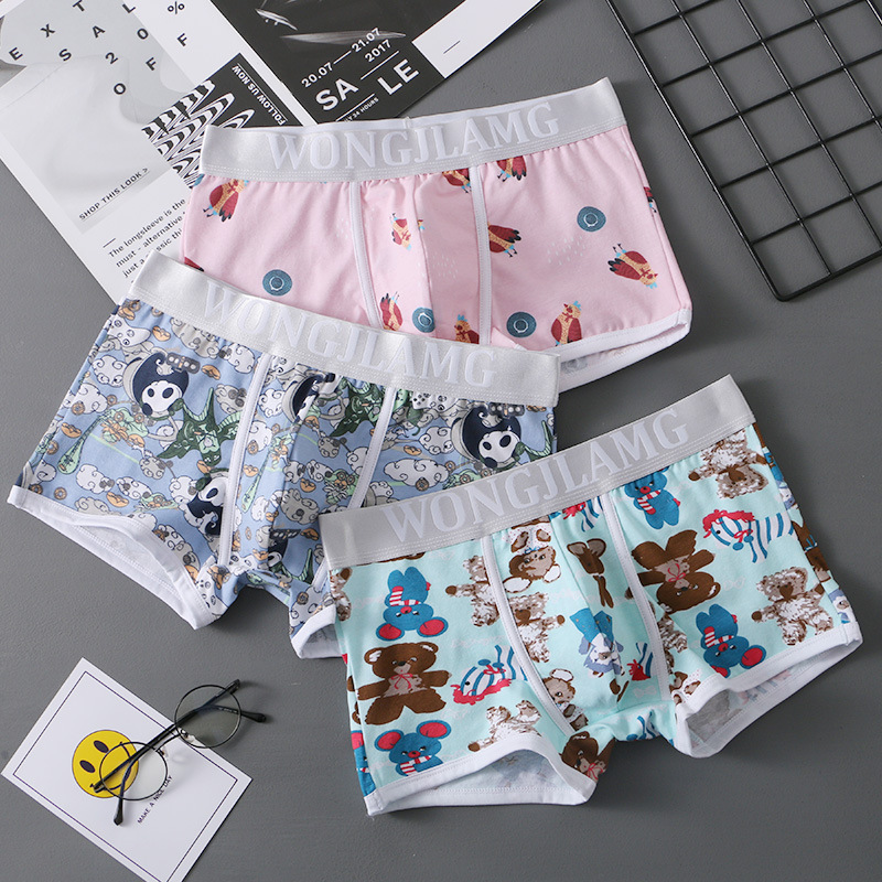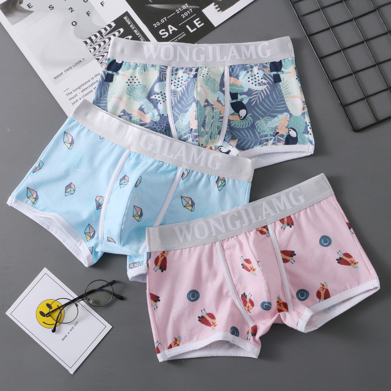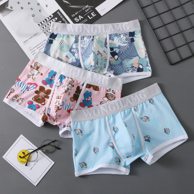 内裤男士纯棉透气个性印花平角裤青年男生学生潮流运动四角短裤头