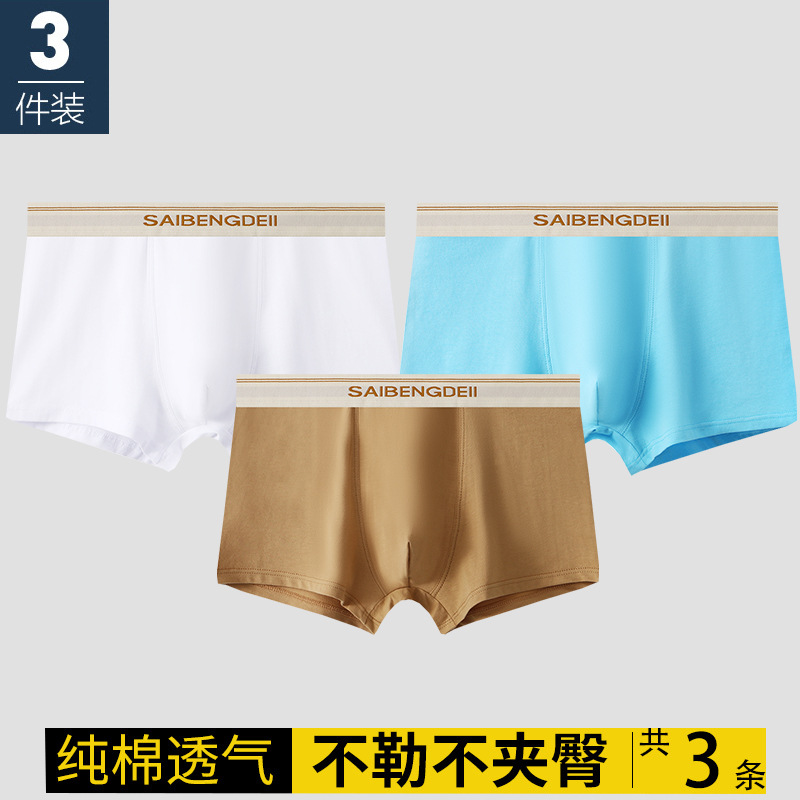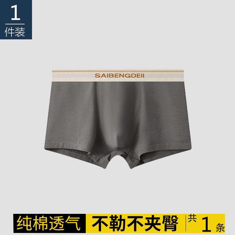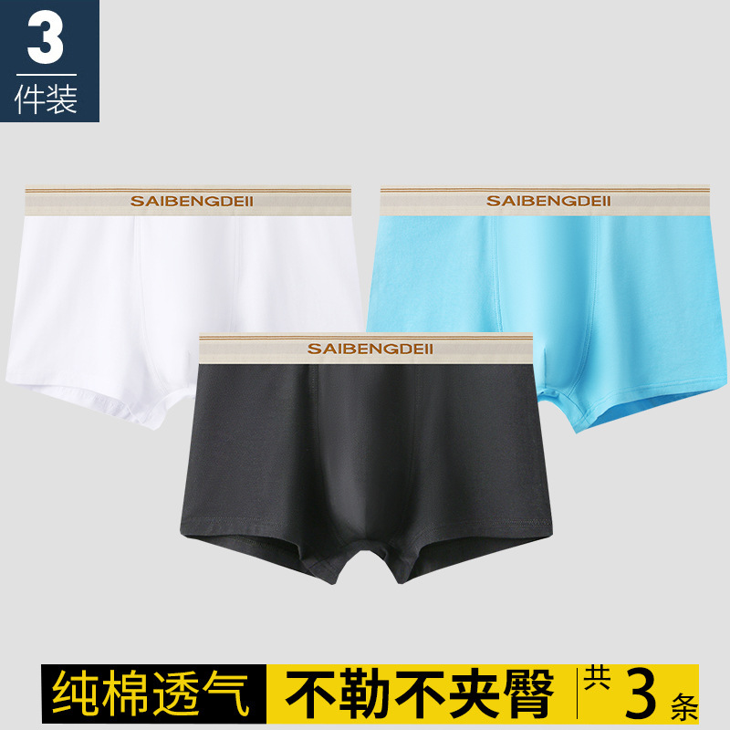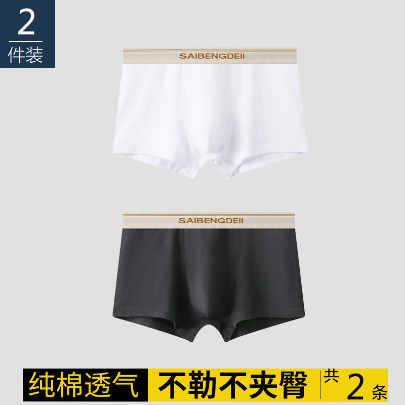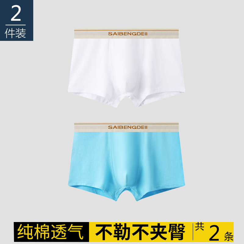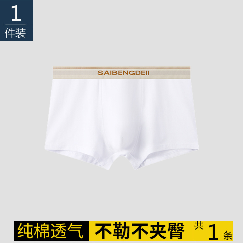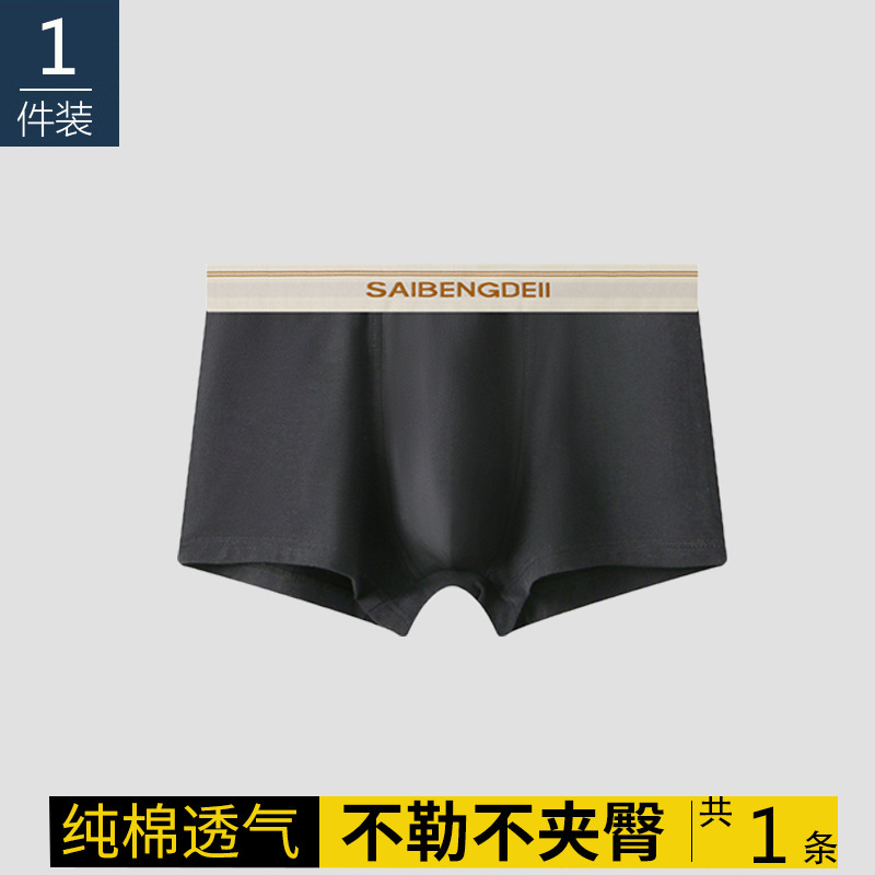 正品内裤男士纯棉透气纯色简约四角裤头青少年男生舒适运动平角裤