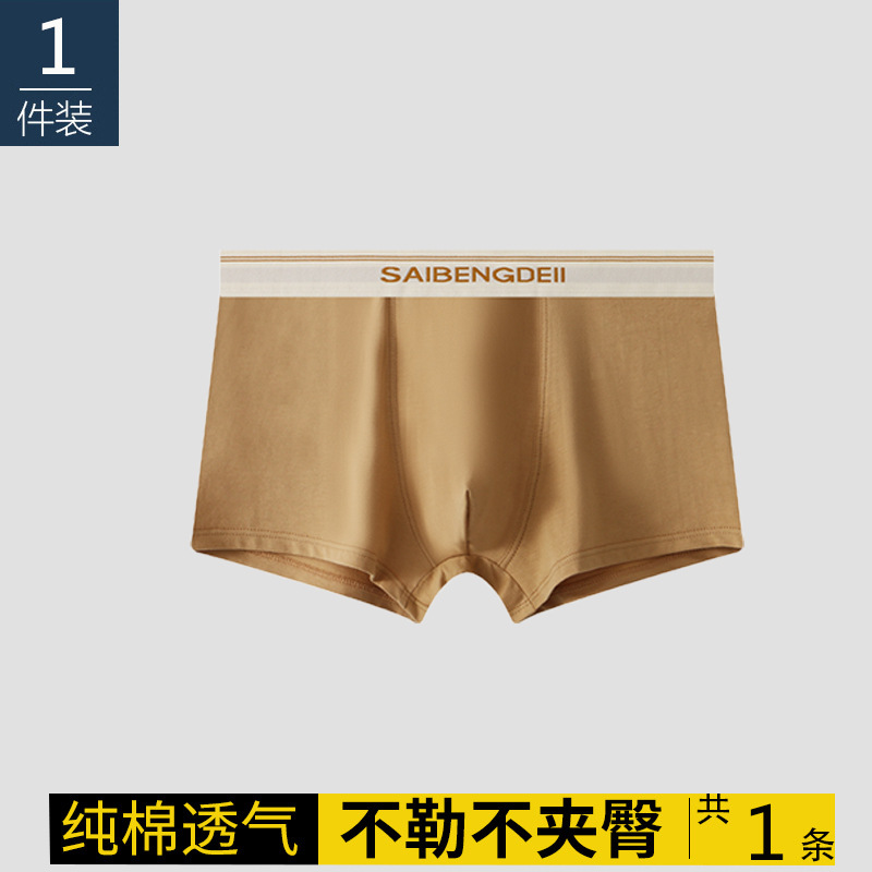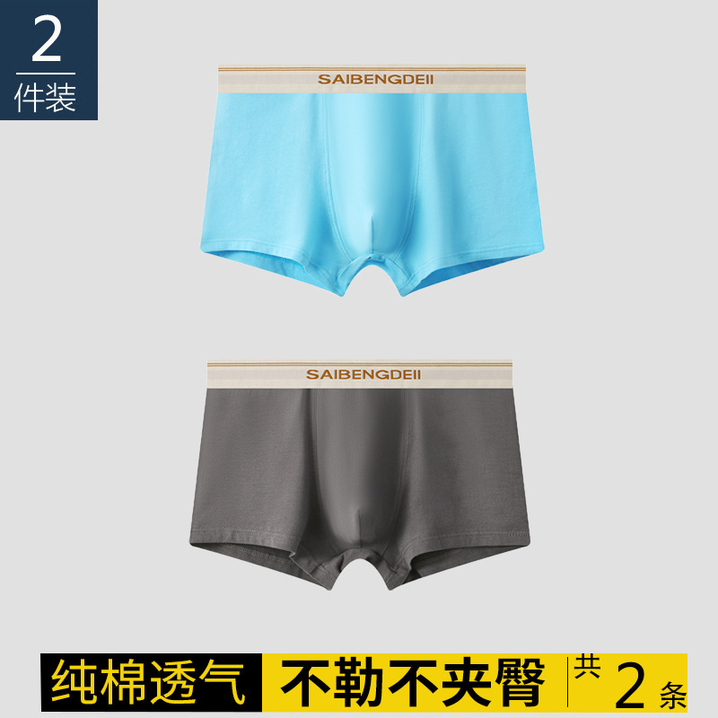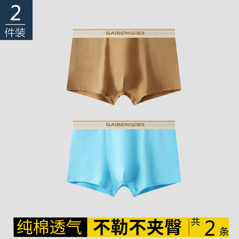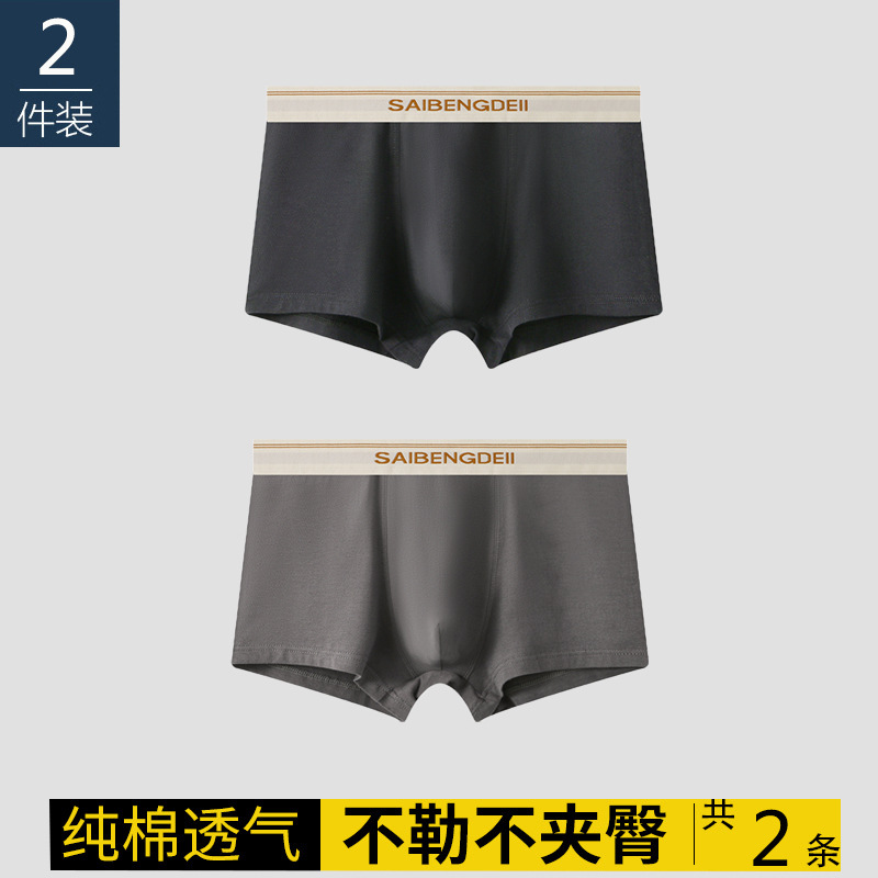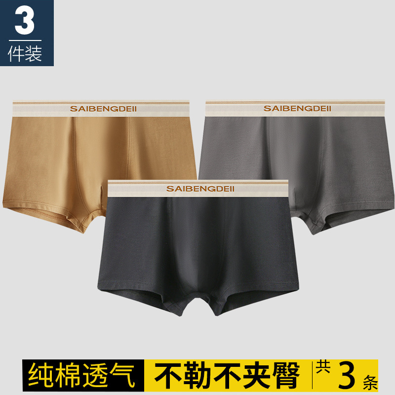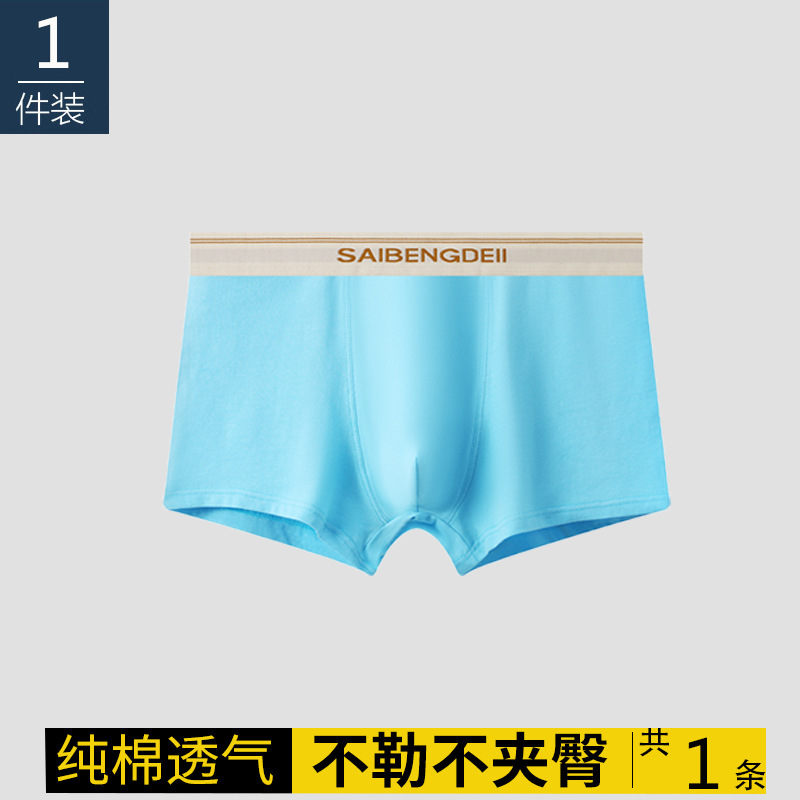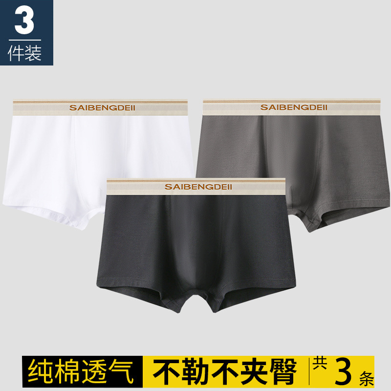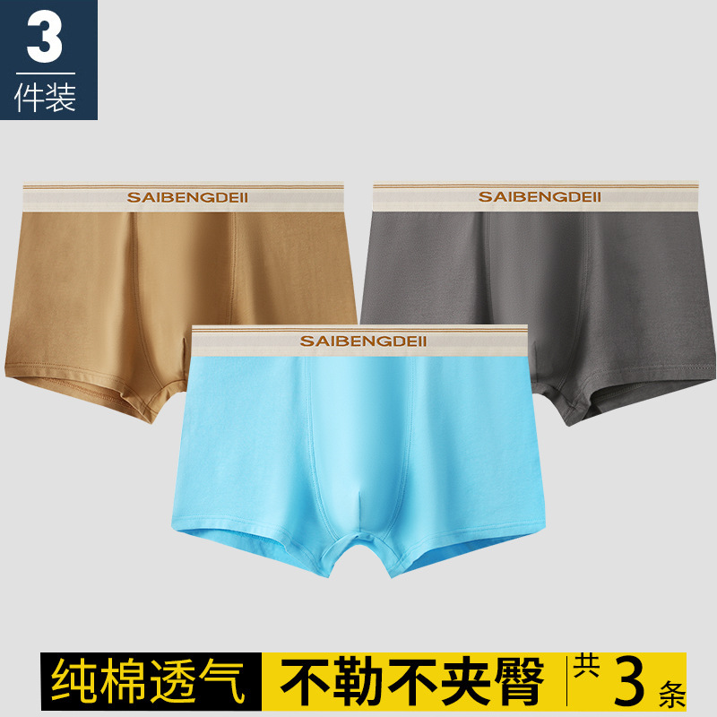 正品内裤男士纯棉透气纯色简约四角裤头青少年男生舒适运动平角裤