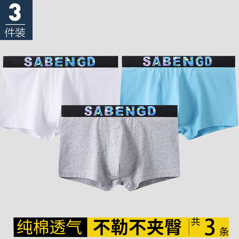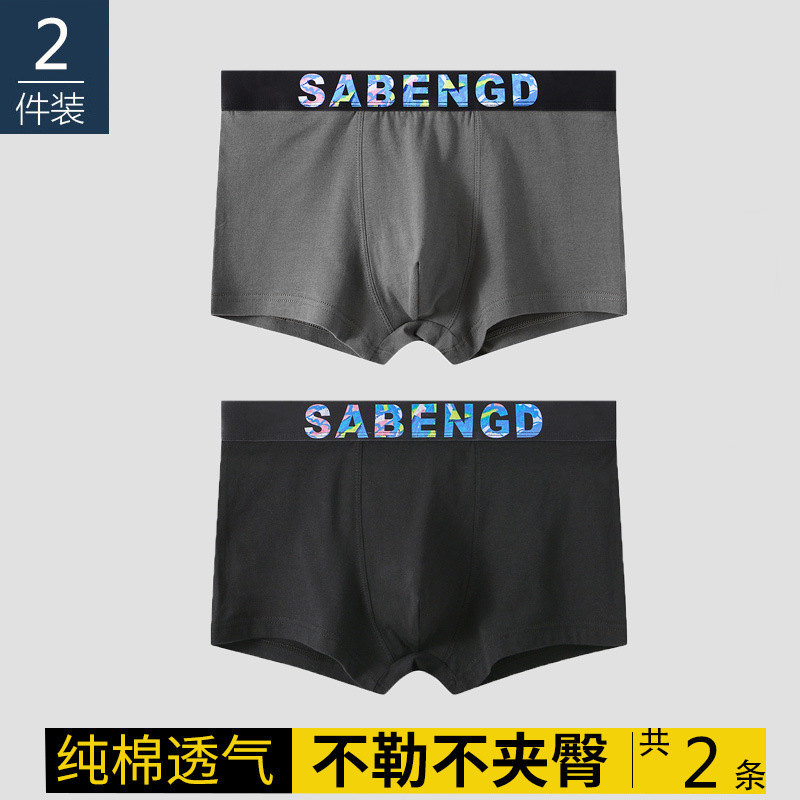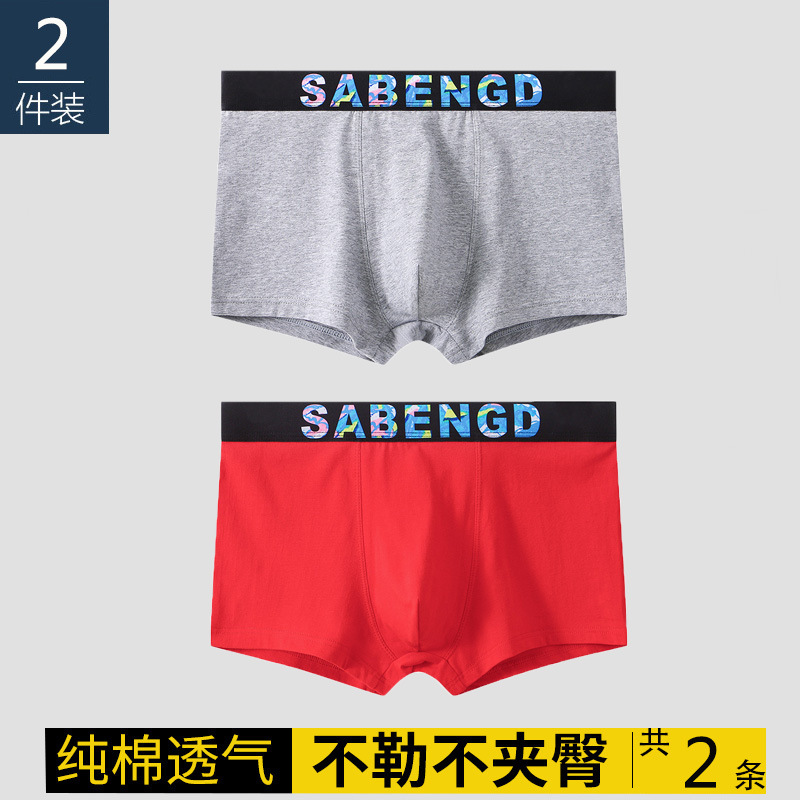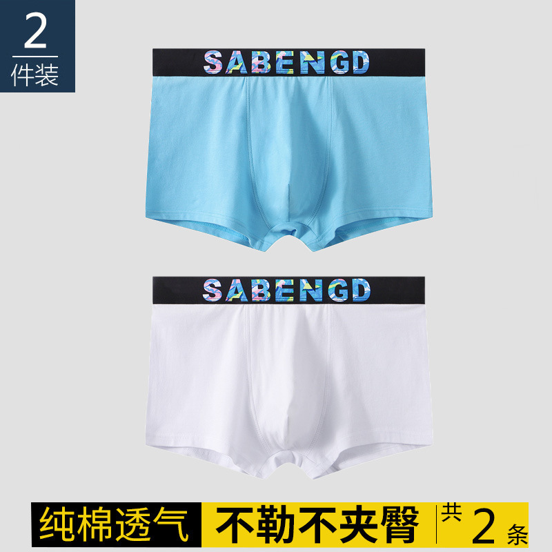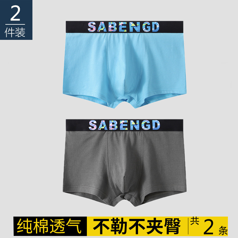 新款内裤男士纯棉透气简约舒适四角短裤头青少年男生防勒平角裤衩