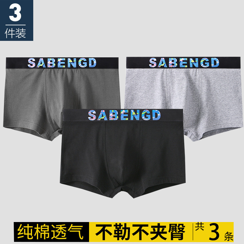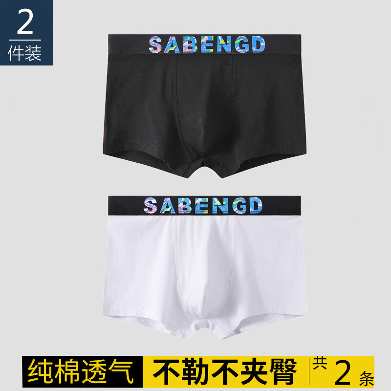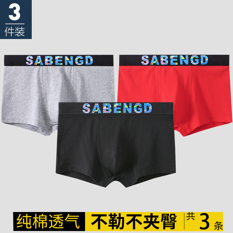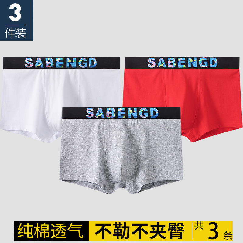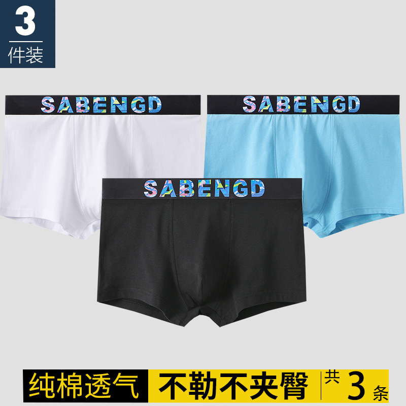 新款内裤男士纯棉透气简约舒适四角短裤头青少年男生防勒平角裤衩