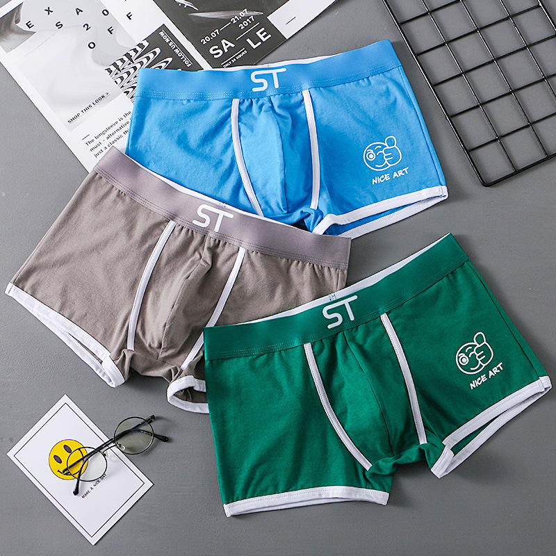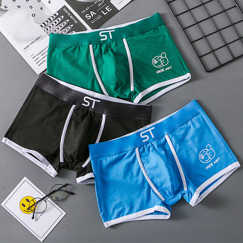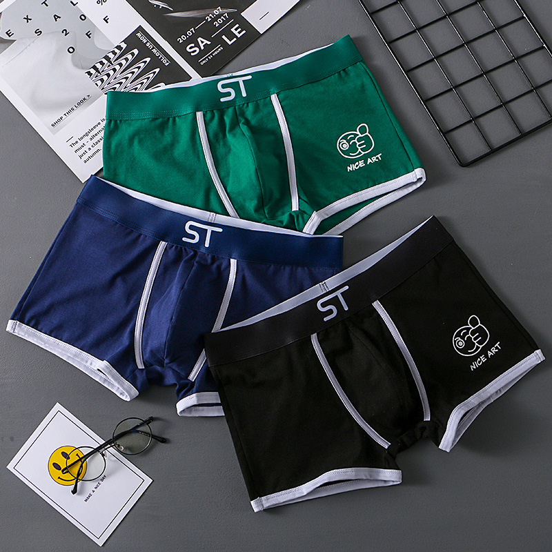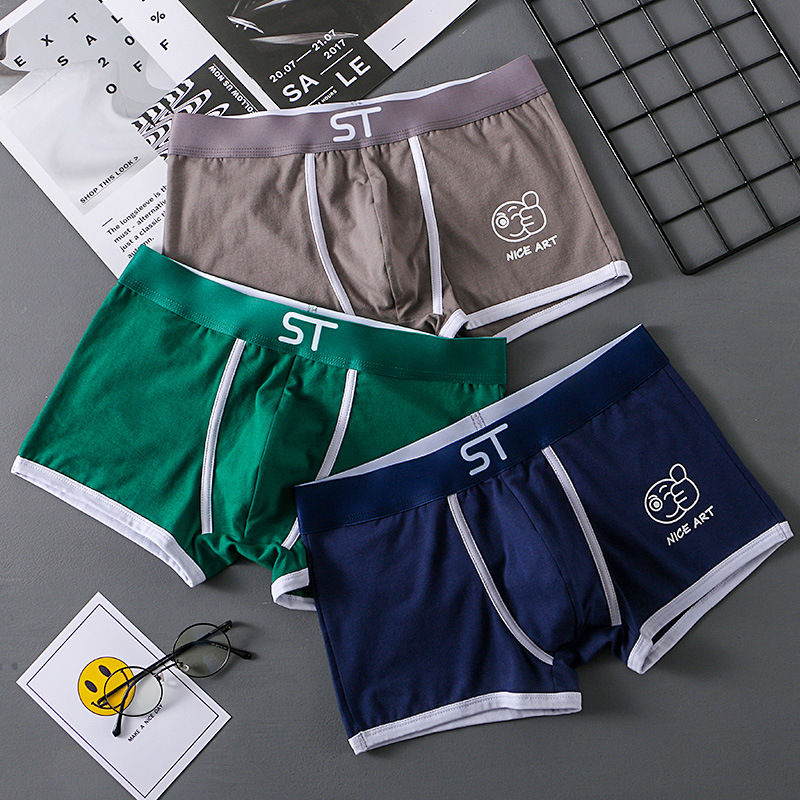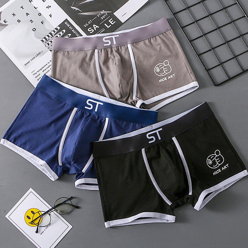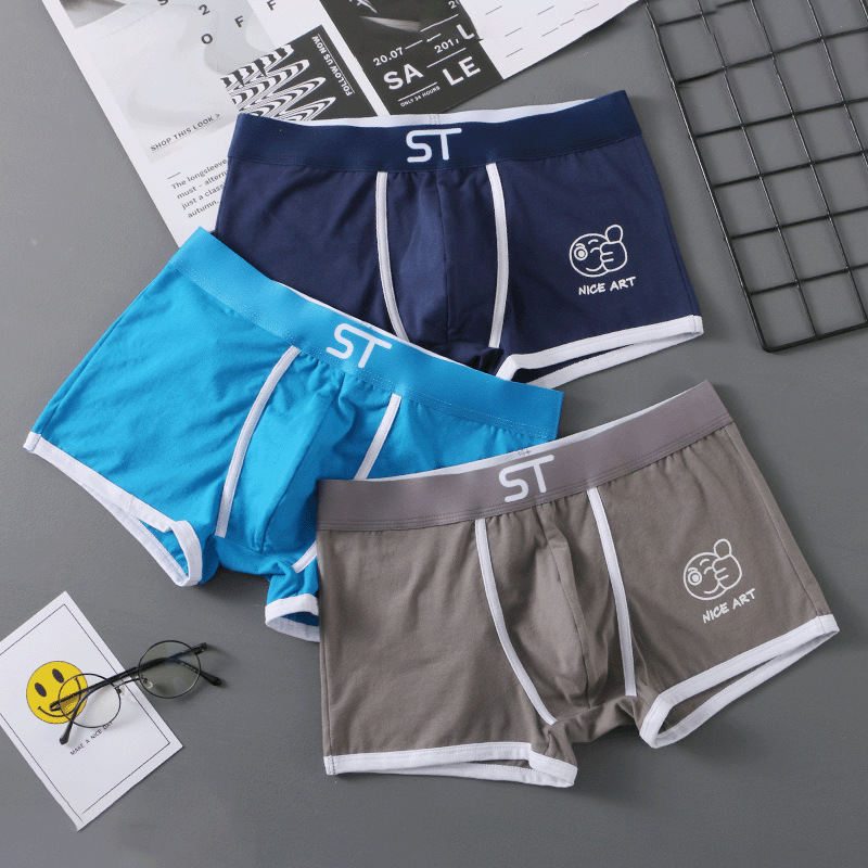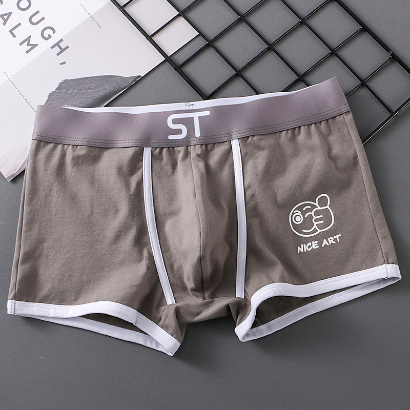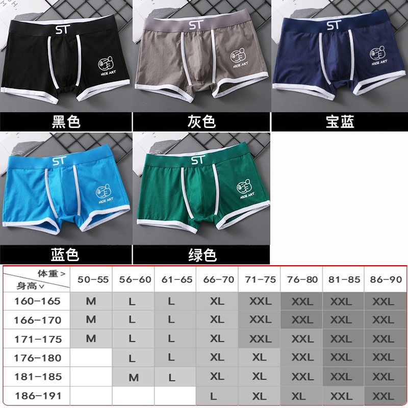 内裤男士纯棉透气简约平角裤青年男生学生中腰舒适运动四角裤头衩