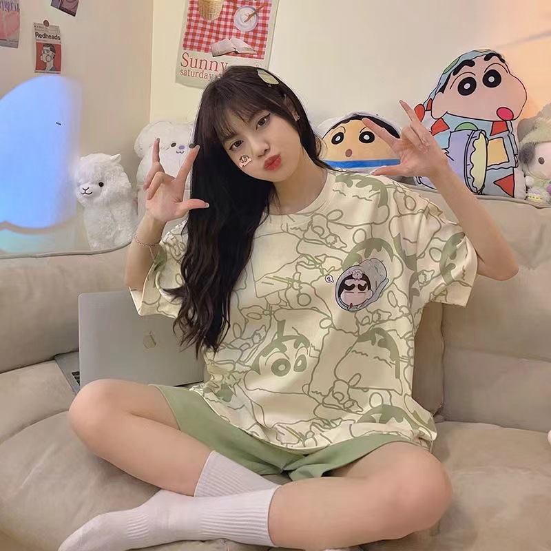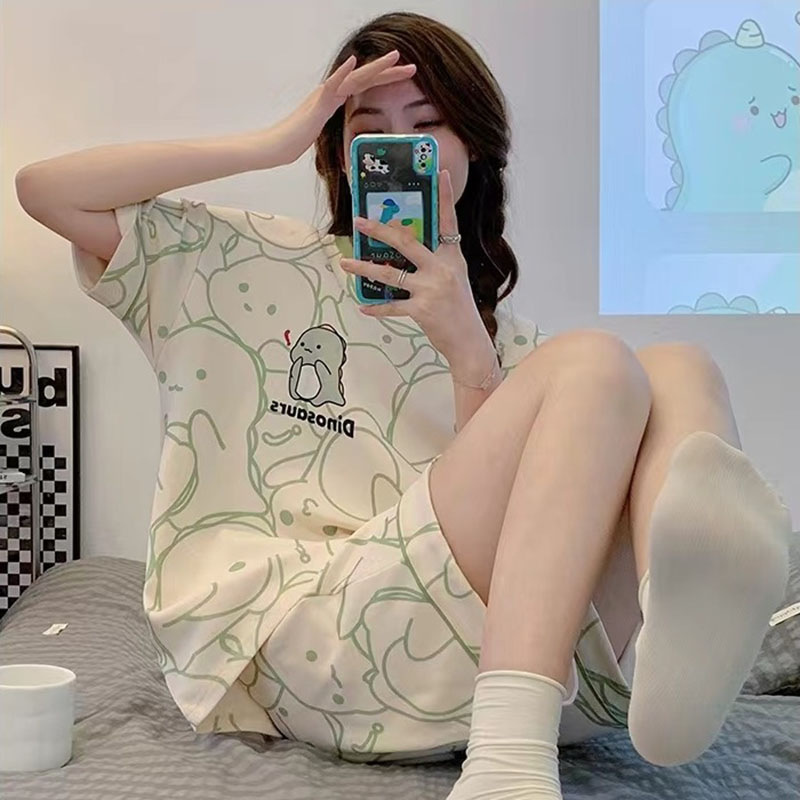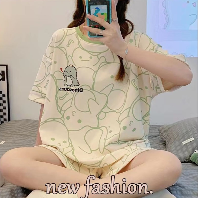 夏季新款睡衣女短袖短裤两件套可外穿卡通恐龙家居服套装女