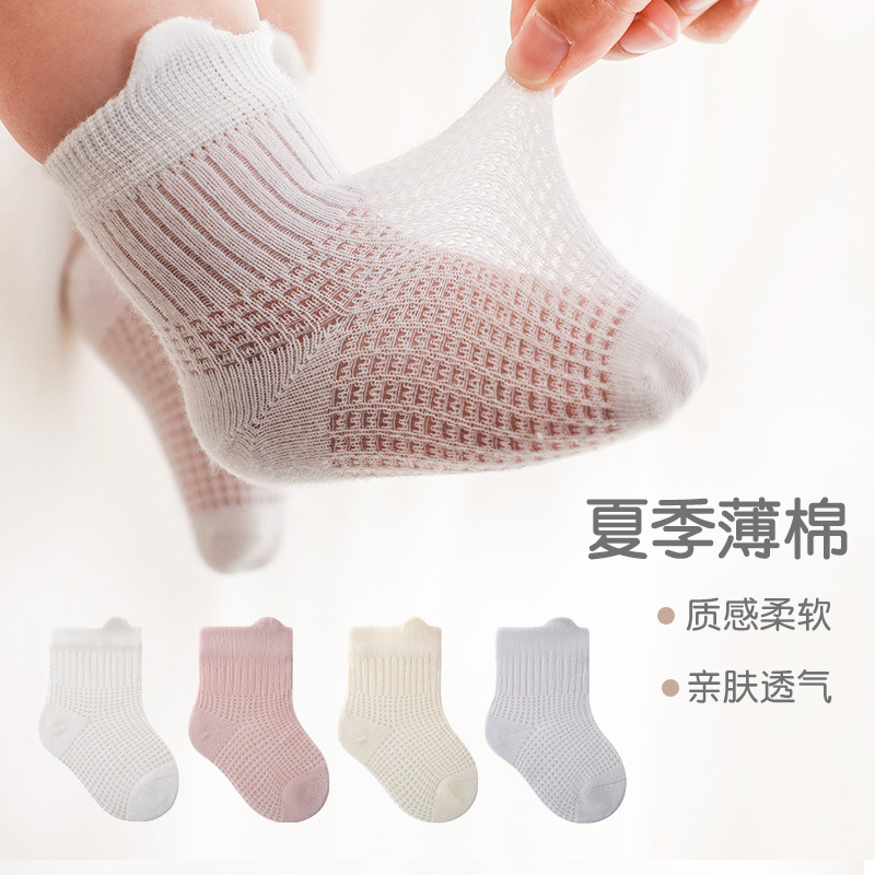新生儿宝宝袜子夏季薄款网眼透气松口无骨婴儿袜子可爱卡通中筒袜