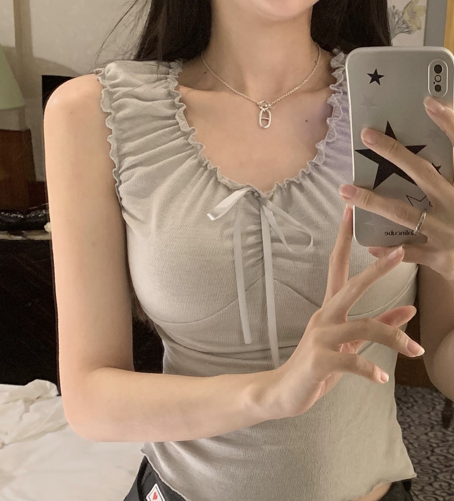 内搭上衣女春设计感花边绑带温柔短款背心吊带背心女夏季外穿
