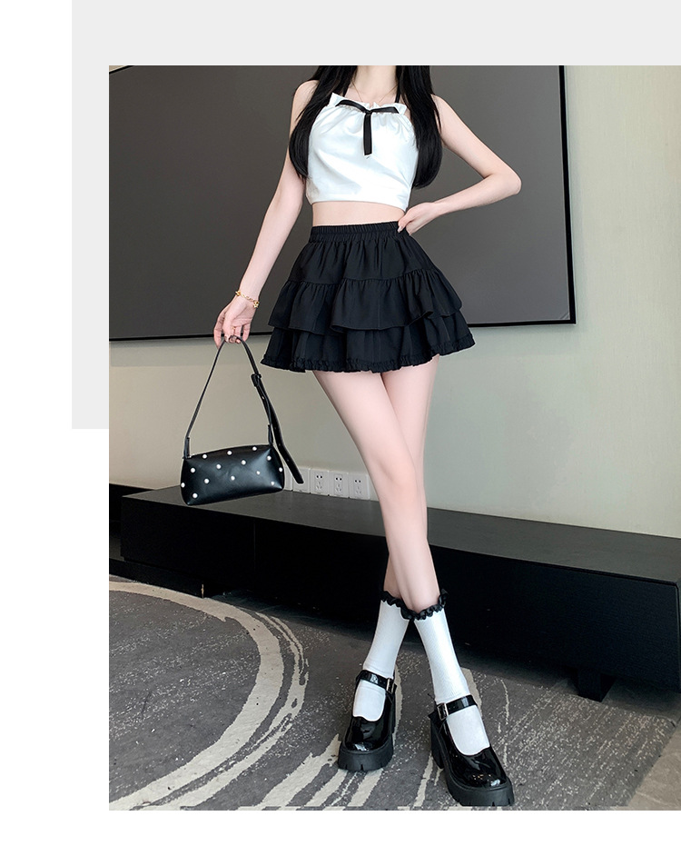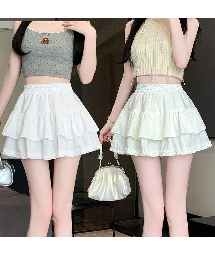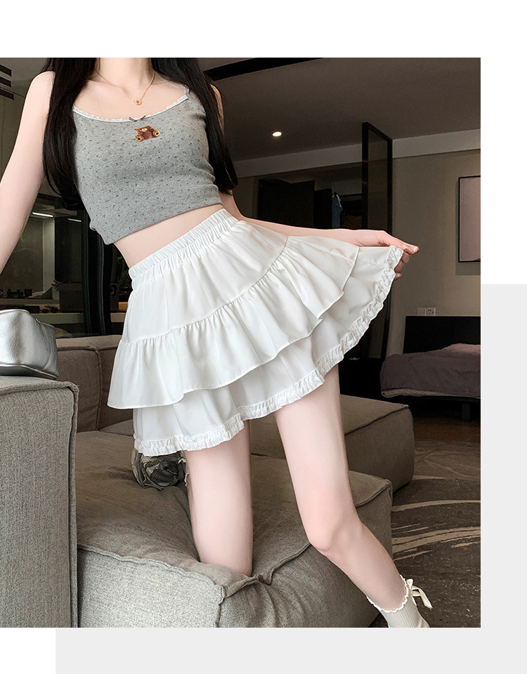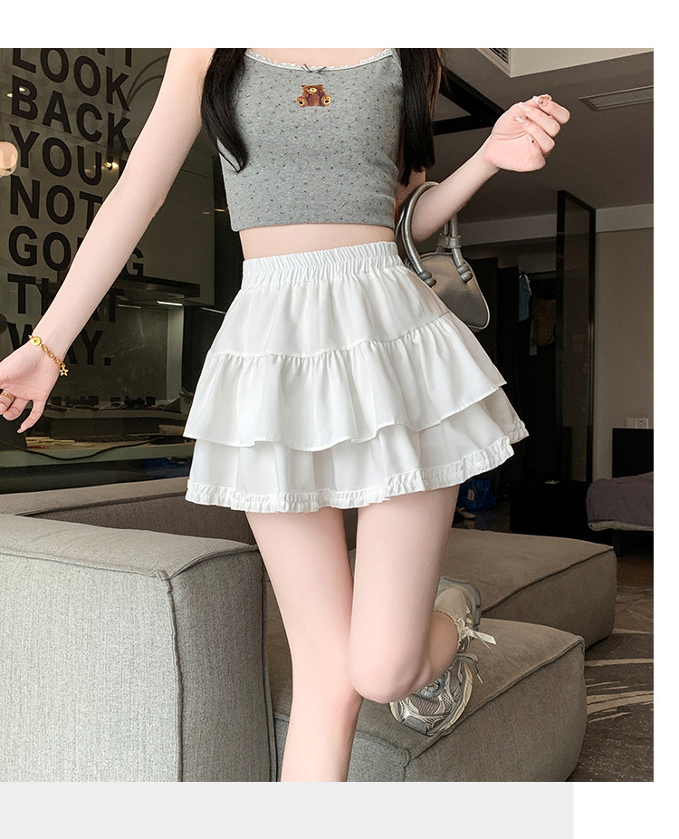 夏季高腰伯克利半身短裙女高级感法式气质白色荷叶边蛋糕A字裙ins