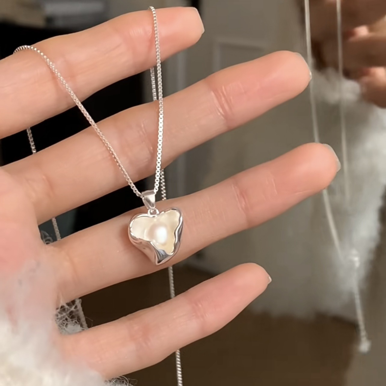 不规则爱心珍珠项链女款轻奢独特气质颈链毛衣链小众高级感锁骨链