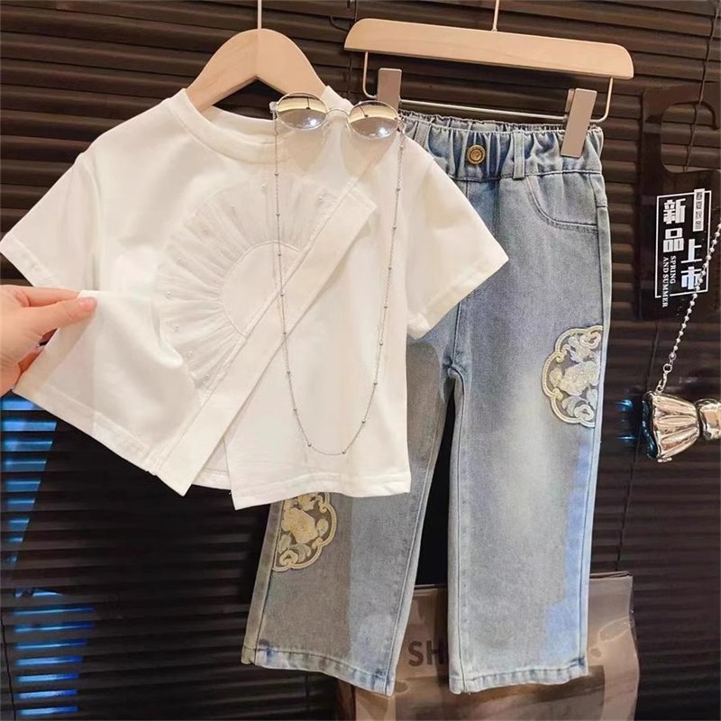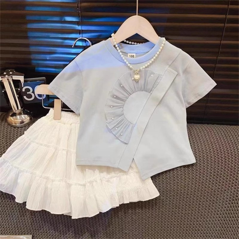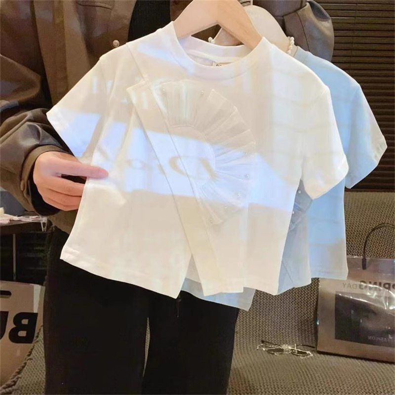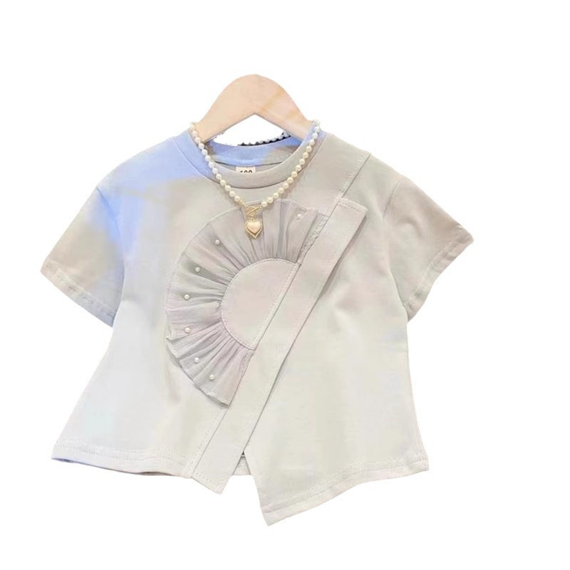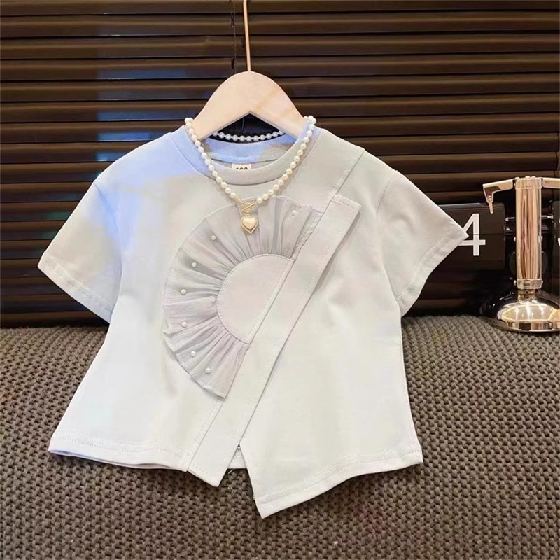 2025韩版女童短袖体恤衫夏季新款时尚洋气纯色荷叶边短袖T恤上衣