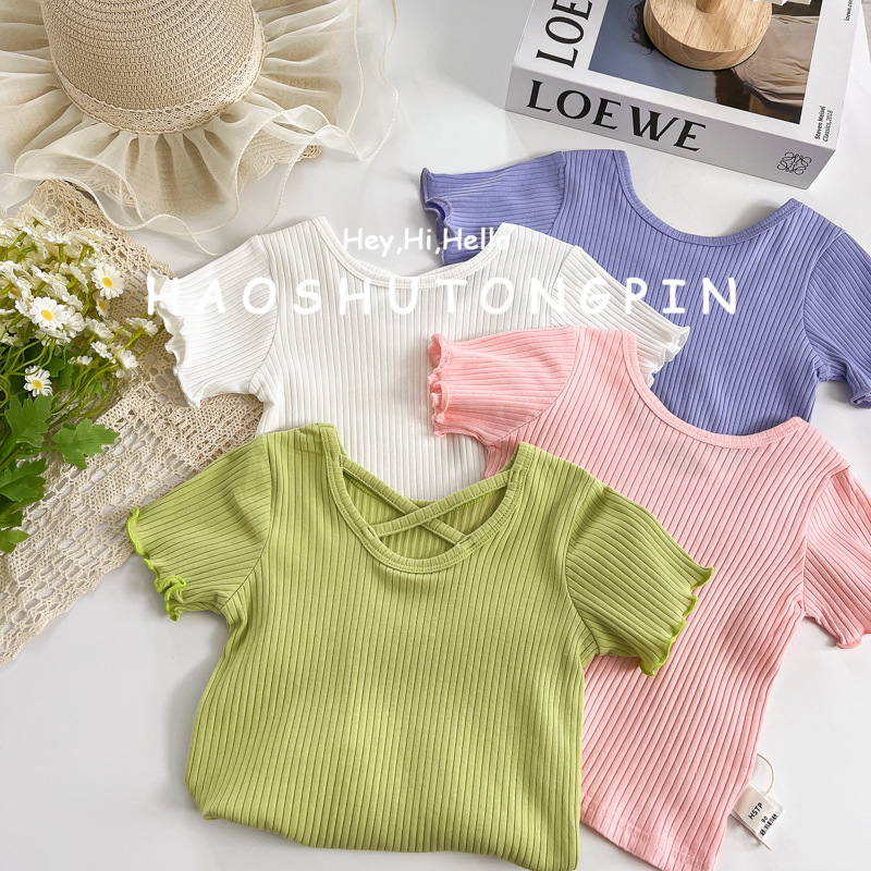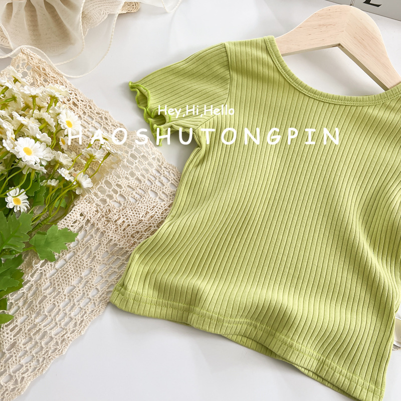 2025新款女童夏装宝宝夏季薄款夏天衣服儿童夏款短袖露背T恤