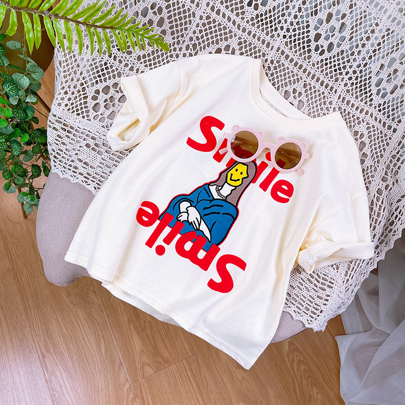 儿童时尚休闲T恤2025夏季新款韩版女童卡通印花短袖纯棉上衣宝宝
