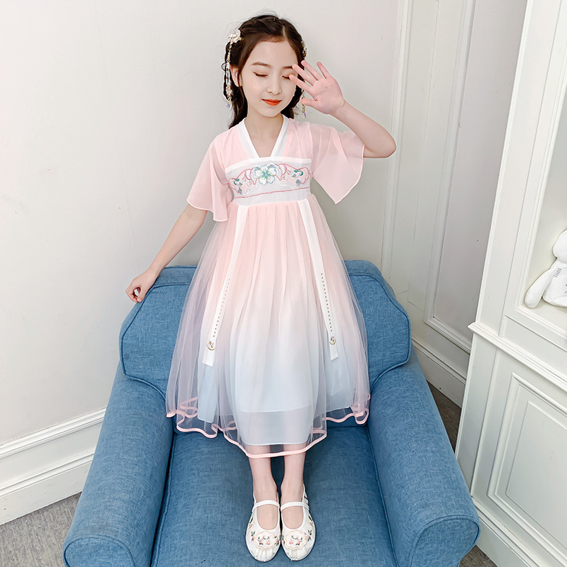 女童汉服连衣裙纱裙表演服夏季新品超仙甜美可爱唐装