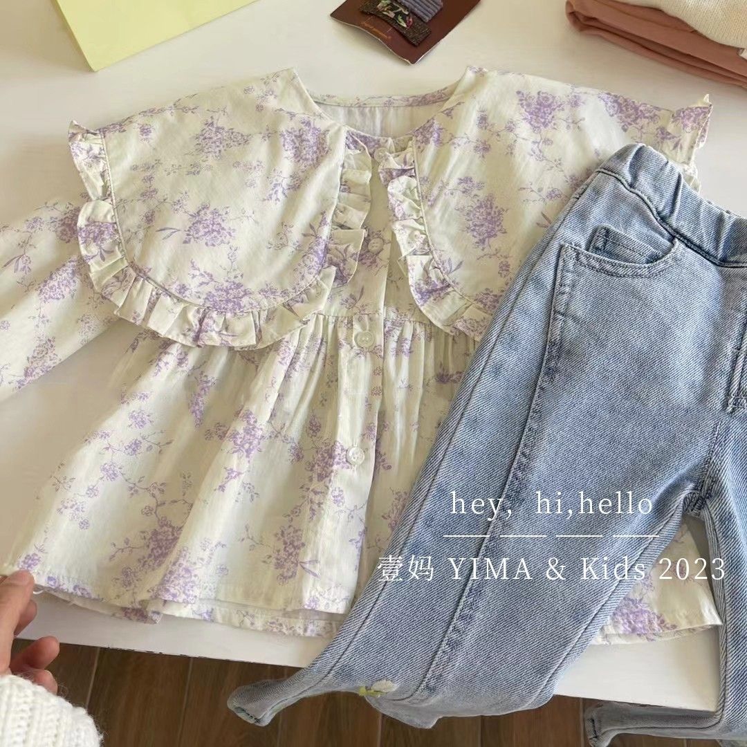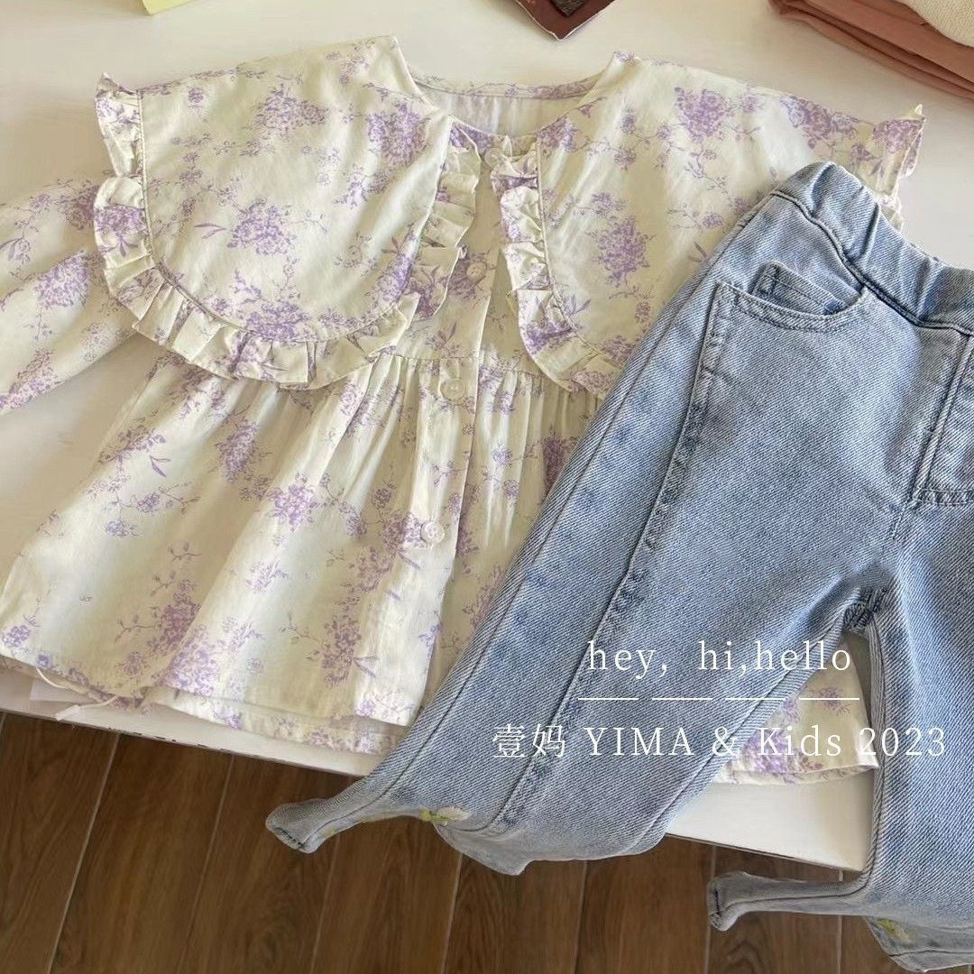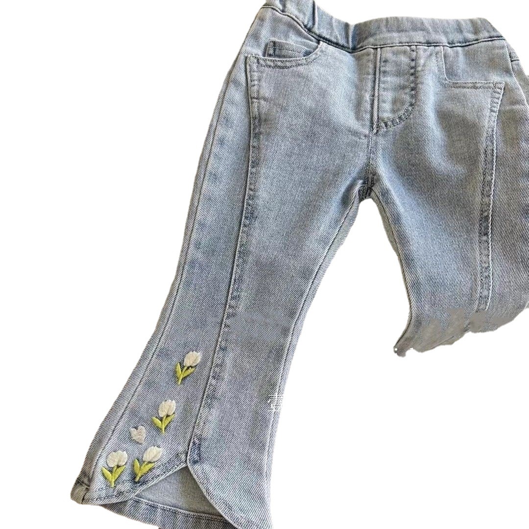 韩版童装2025春装女童洋气浅蓝色牛仔裤儿童休闲长裤宝宝绣花裤子