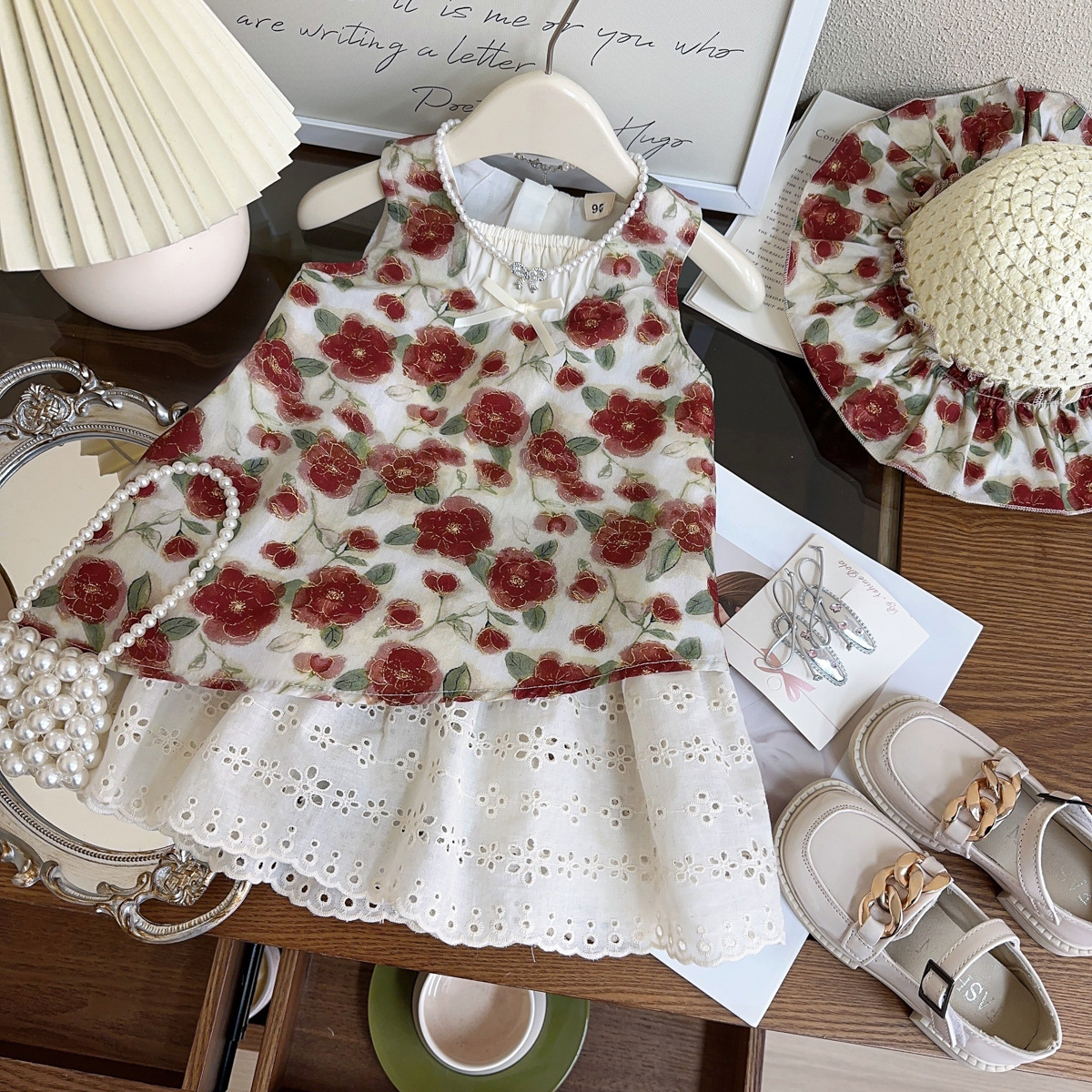 女童连衣裙2025夏季新款小女孩洋气碎花背心裙公主裙送帽子跨境