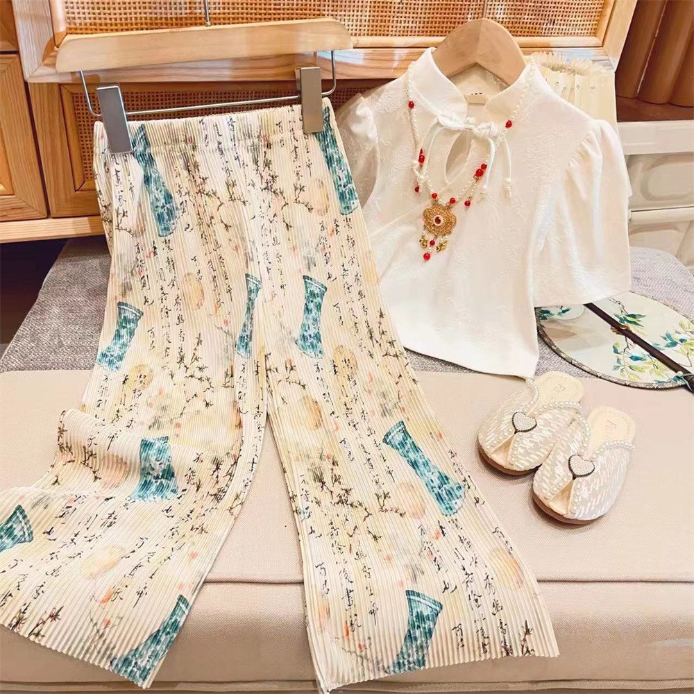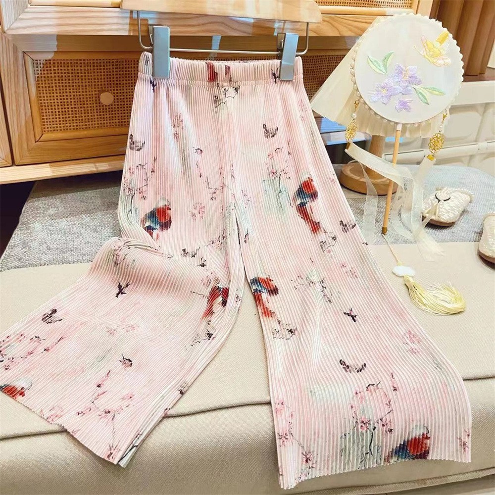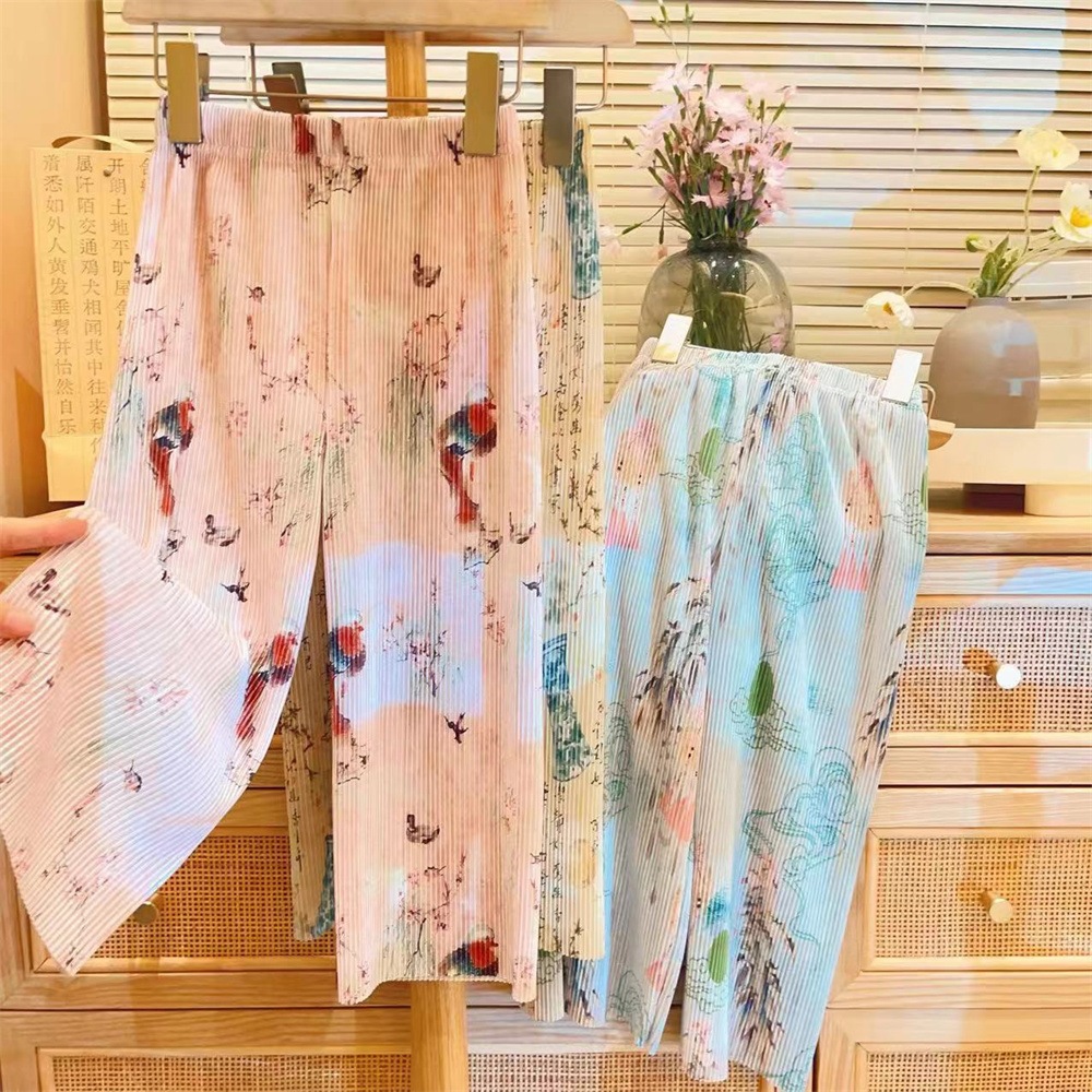 新品女童国风防蚊裤2025新款休闲直筒阔腿儿童长裤子中小童童装