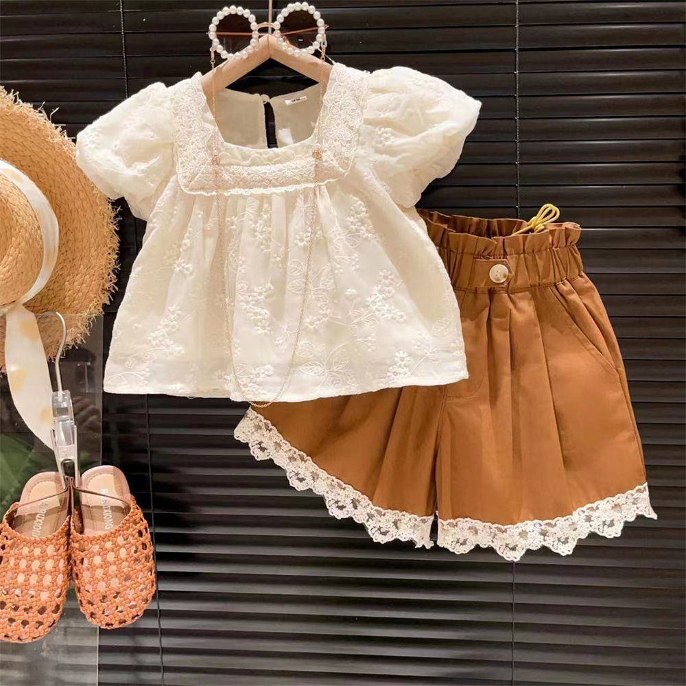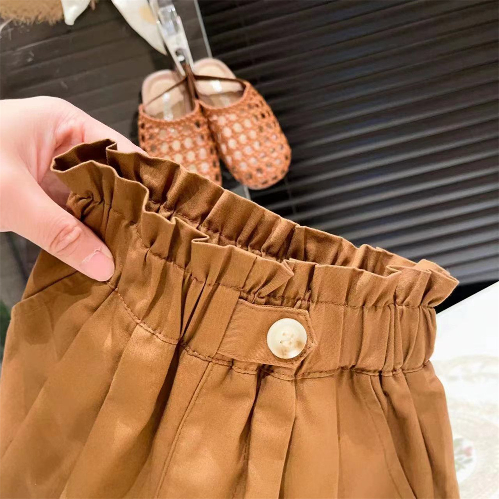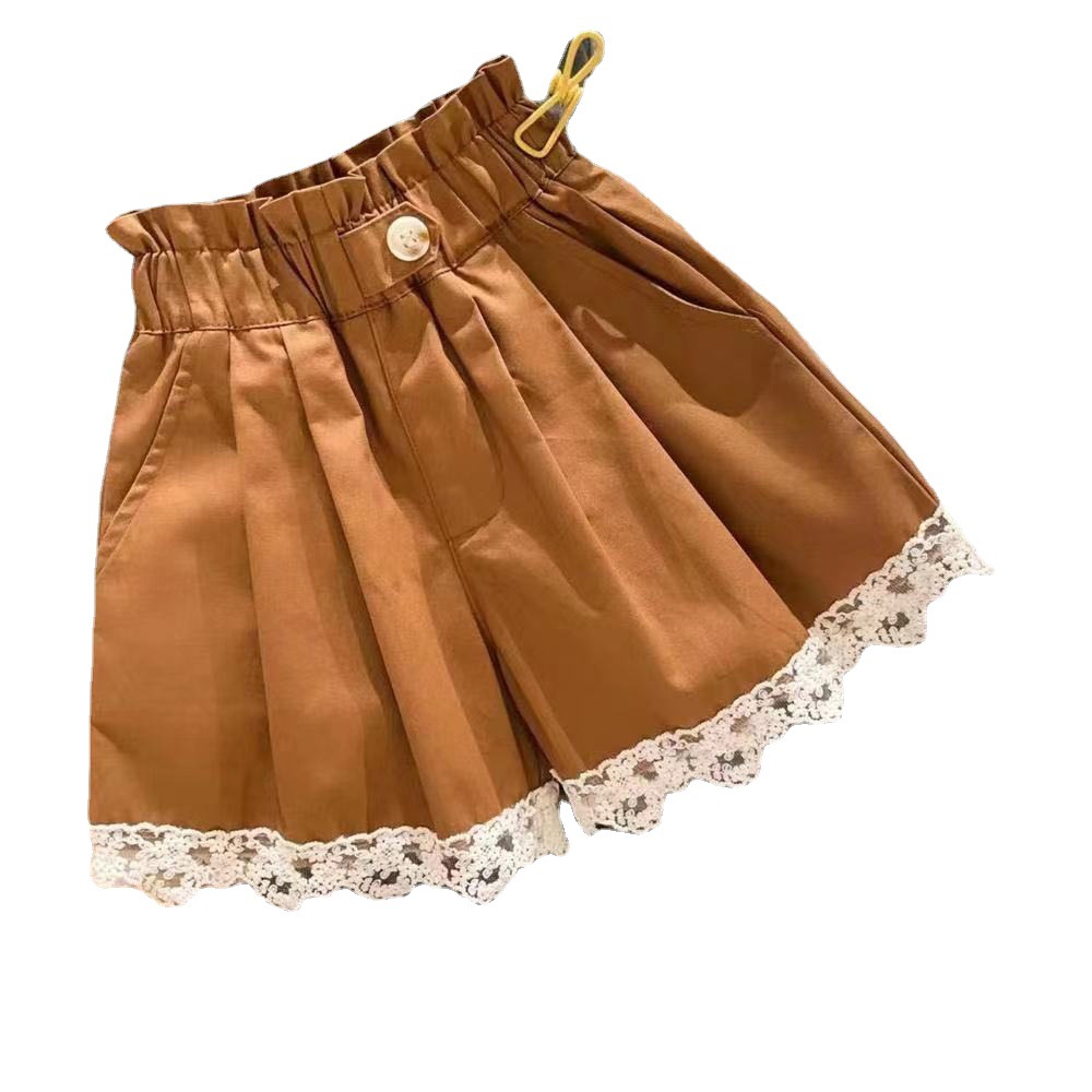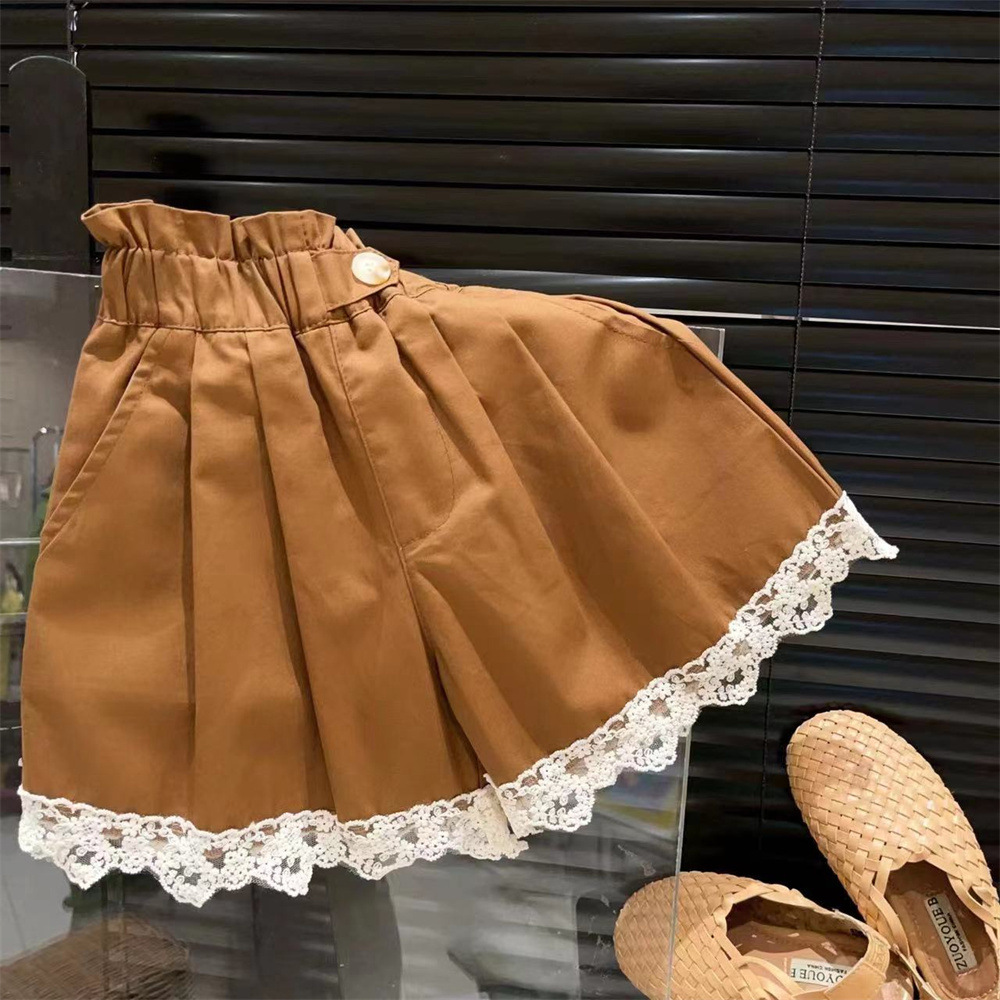 女童高腰木耳边一粒扣蕾丝包边百搭短裤热裤2025夏装新品短裤子