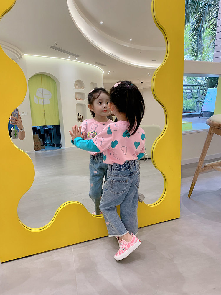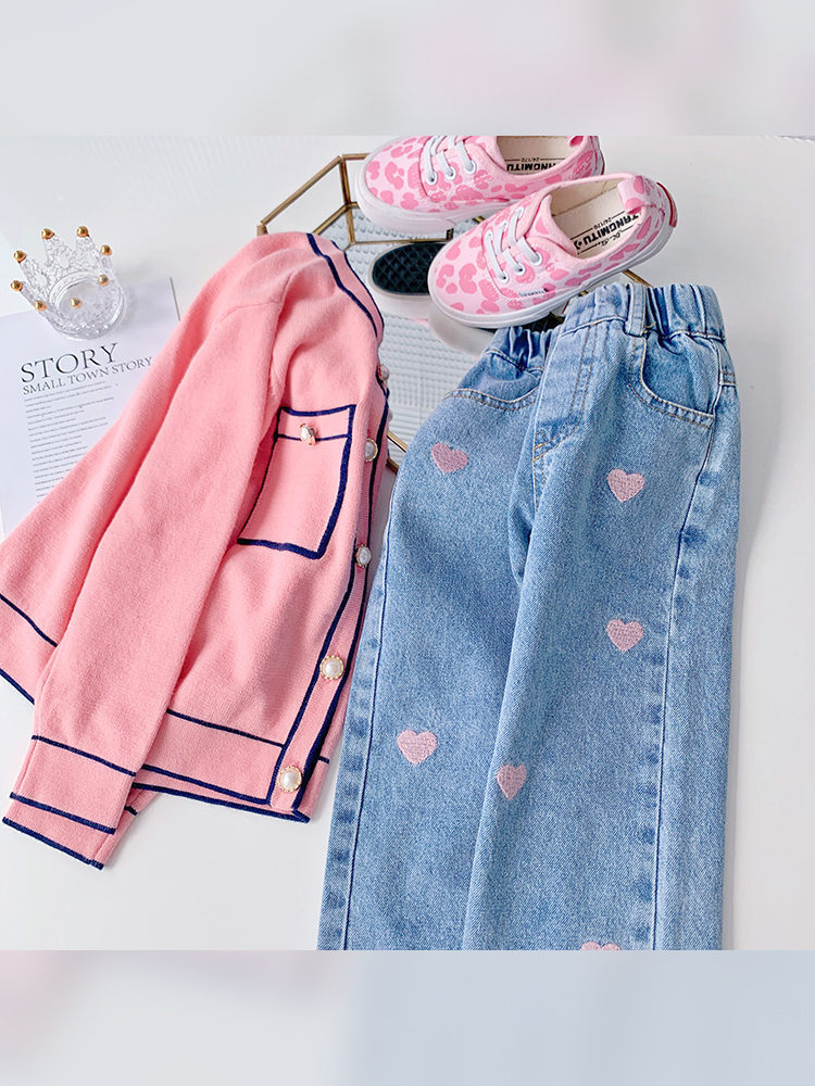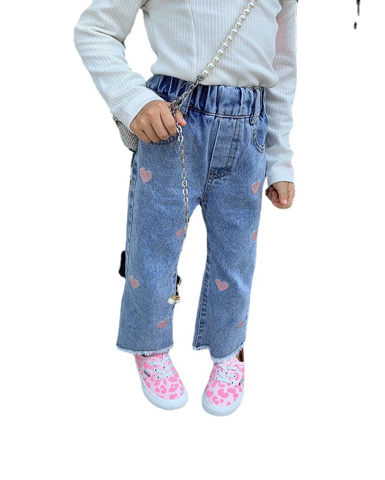 新女童韩版牛仔裤2025春秋季新款儿童爱心绣花休闲中小童长裤裤子