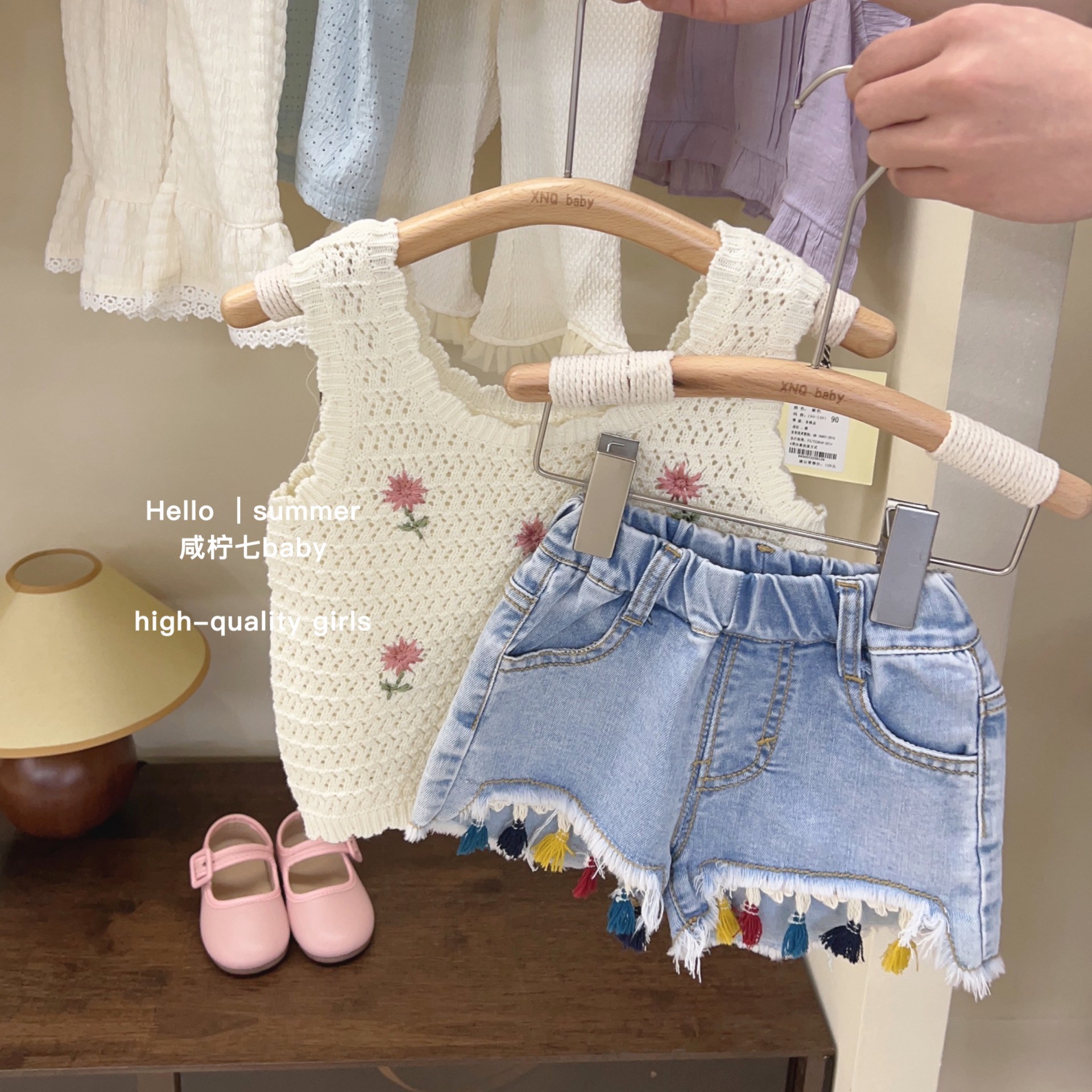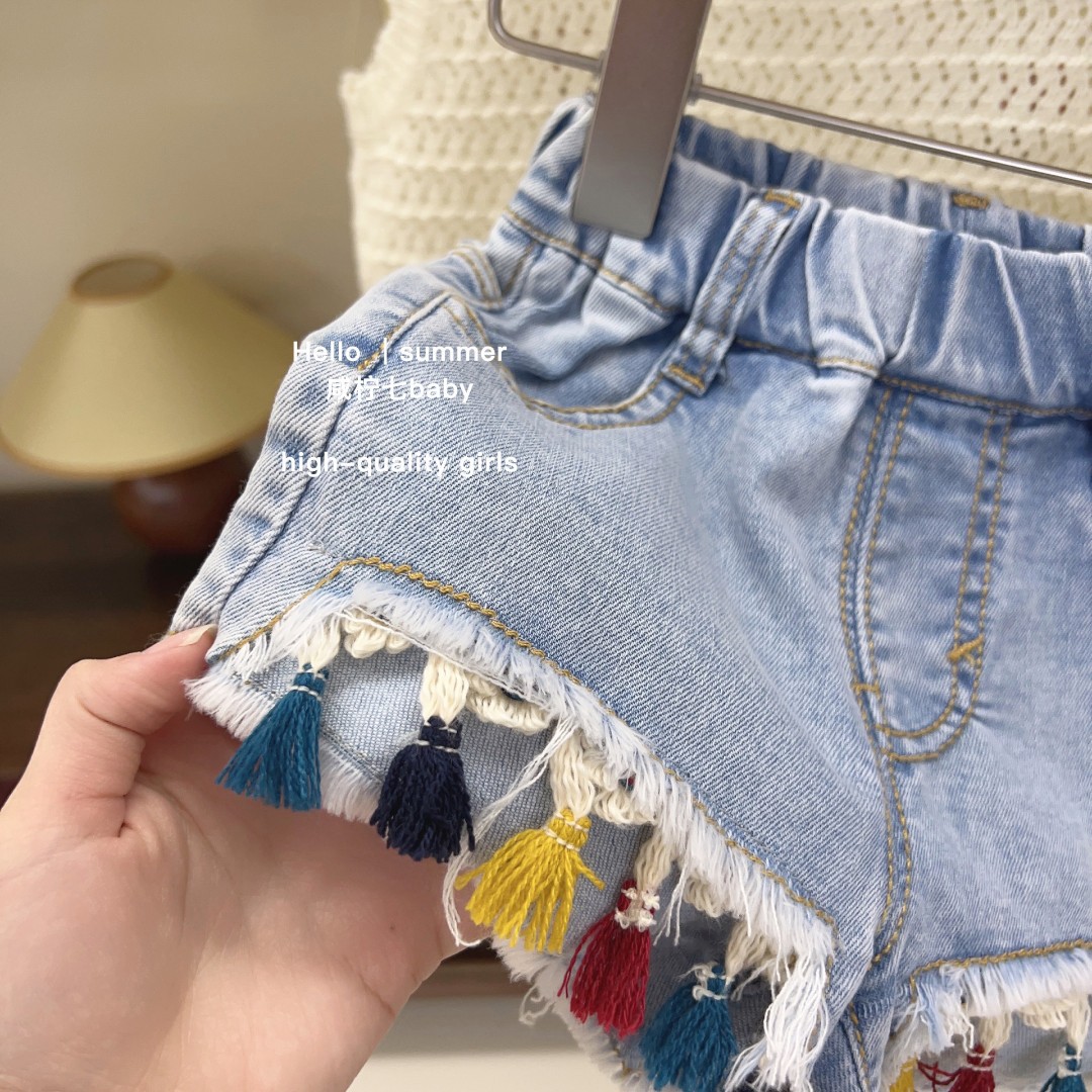 设计师款又软又薄新品2025夏新款女童流苏牛仔短裤韩版时尚牛仔裤