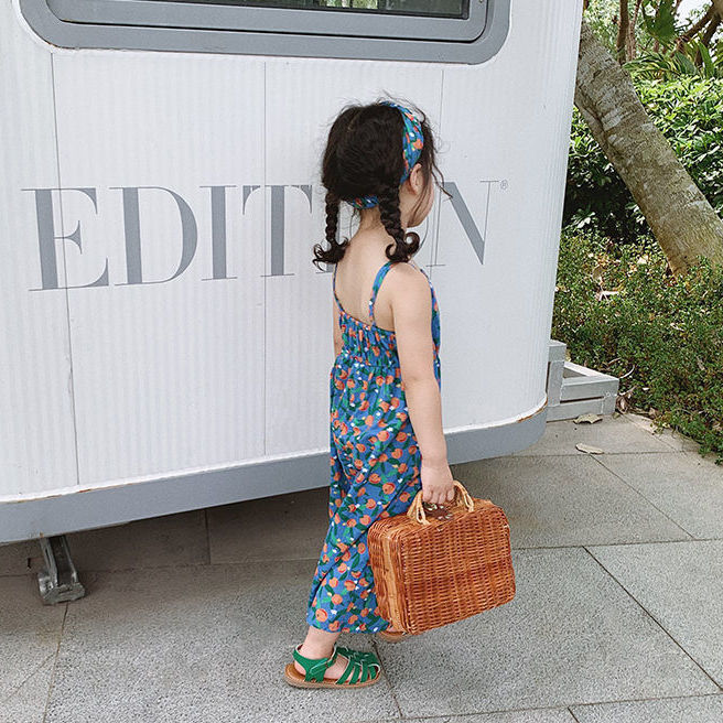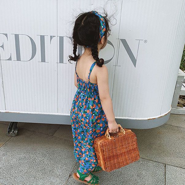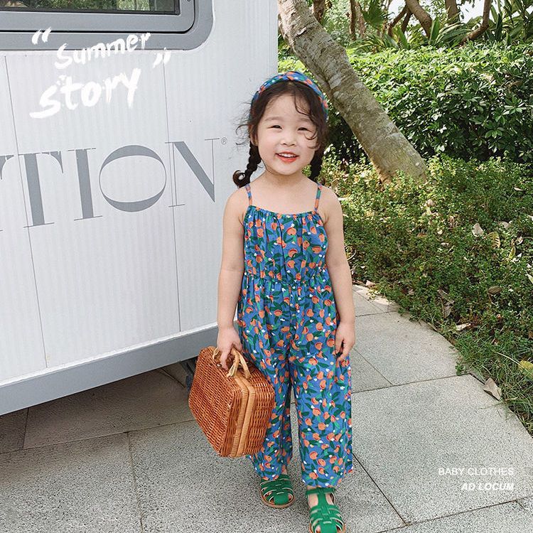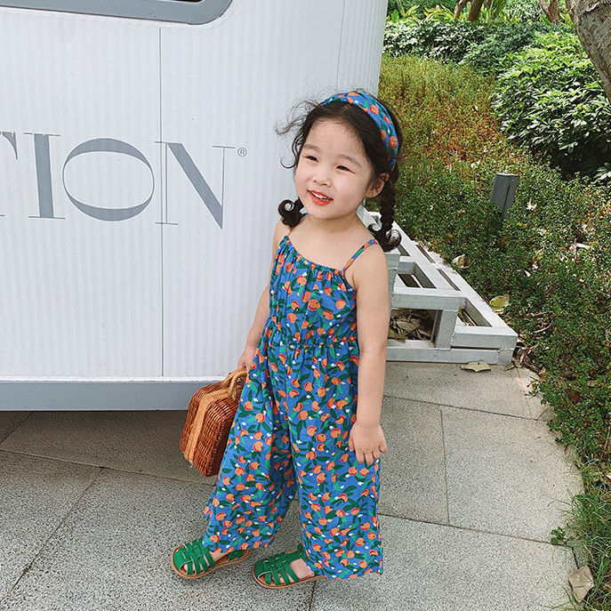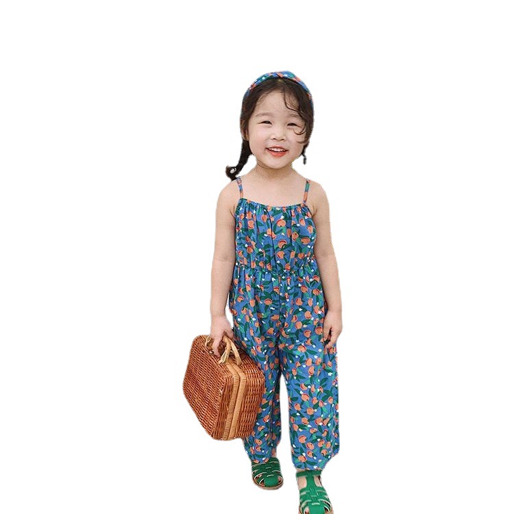 2025夏洋气宝宝碎花吊带连体裤童装女童韩版哈衣中小童休闲爬服潮