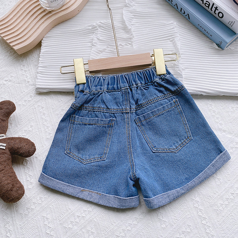 女童装高腰翻边牛仔短裤2025夏季新品宝宝休闲百搭时尚柔软热裤