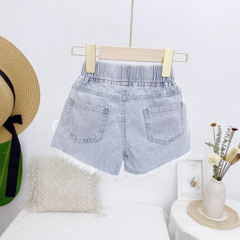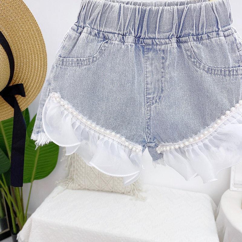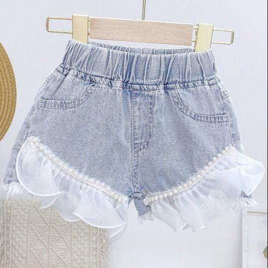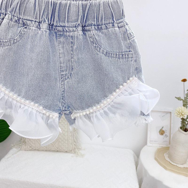 韩版女童热裤薄款2025夏季新款时尚珍珠花边甜美牛仔短裤休闲裤潮