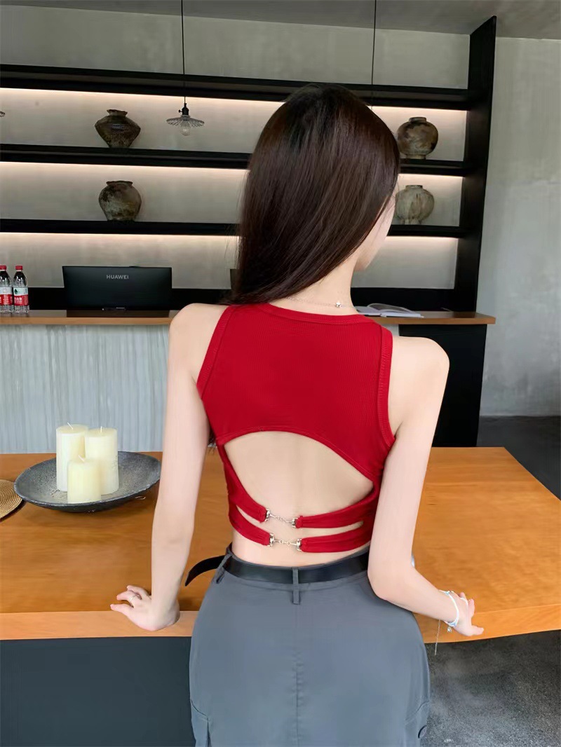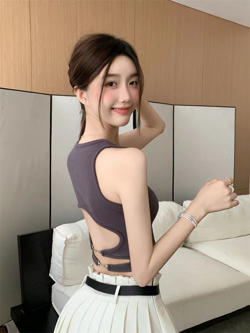 美式辣妹美背露背吊带背心女夏季百搭外穿带胸垫纯欲工字运动上衣