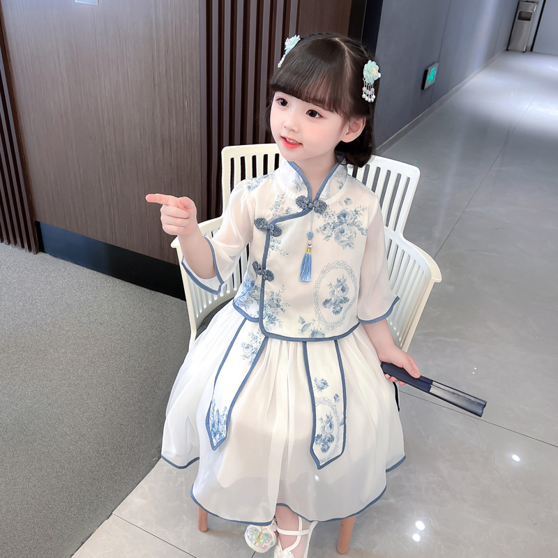女童中国风青花瓷套装夏季新品古风小清新时尚唐装
