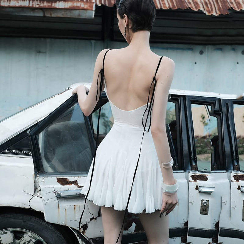 夏季新款黑色碎花吊带裙一字肩雪纺连衣裙显瘦中长裙子女