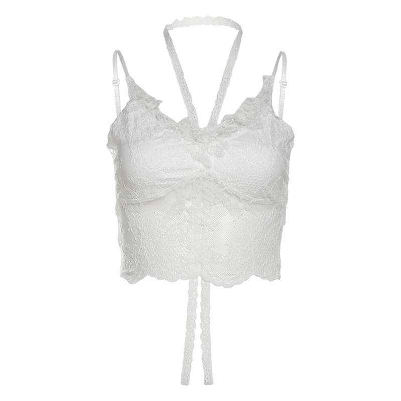 跨境欧美风新款女装精致纯色镂空蕾丝细带设计露脐上衣