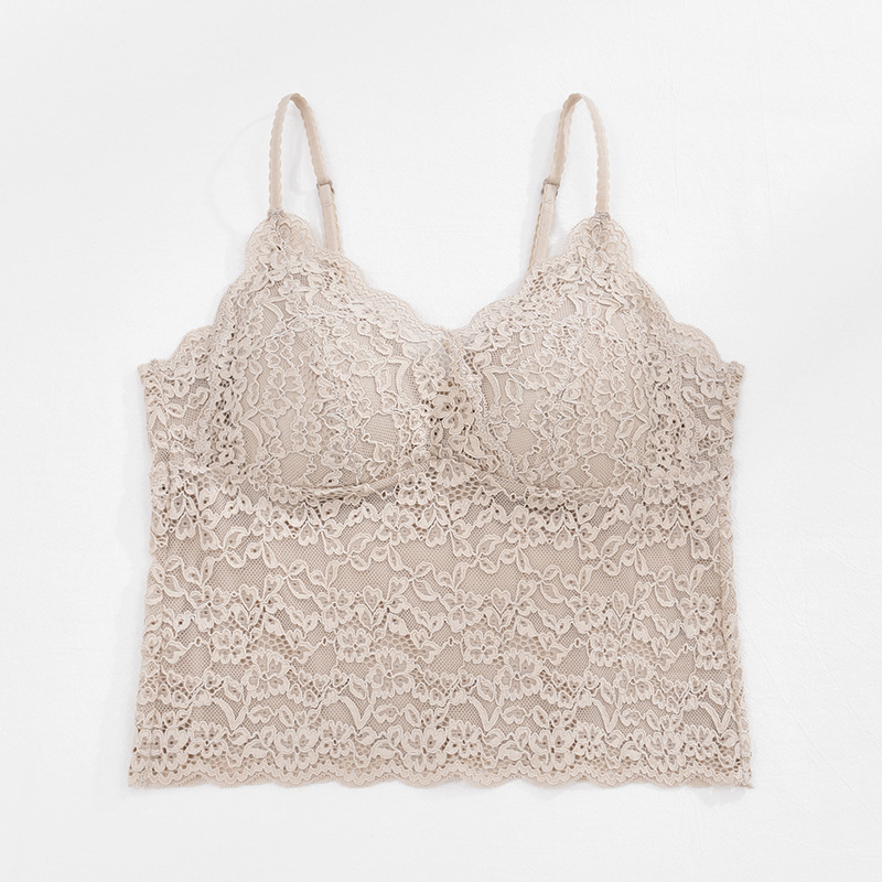 春新款法式蕾丝内衣女士无钢圈美背文胸吊带胸垫内搭背心打底裹胸