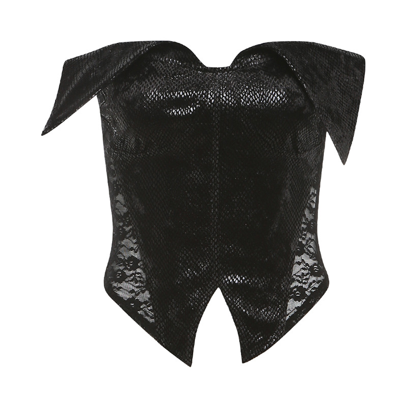跨境欧美风新款女装蛇纹紧身胸衣光滑面料细腻纹理上衣